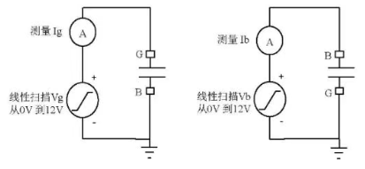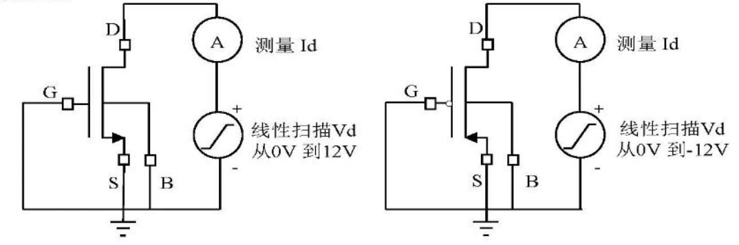 MOS参数1. 阈值电压Vt第一种测试方法是最大电导测量,也是线性外推法:a. 对于NMOS,首先设定Vd=0.1V和Vb=Vs=0V,然后线性扫描Vg从0V到VDD或者VDDA(VDD为低压器件的最大工作电压,VDDA为中压器件的最大工作电压。),测得最大电导时Vg的值,求该点的斜率,通过该点利用斜率作斜线相交于x轴得到数值Vg(x),那么Vt=Vg(x)-0.5Vd。 b. 对于PMOS,首先设定Vd=-0.1V和Vb=Vs=0V,然后线性扫描Vg从0V到-VDD或者-VDDA,测得最大电导时Vg的值,求该点的斜率,通过该点利用斜率作斜线相交于x轴得到数值Vg(x),那么Vt=Vg(x)0.5Vd 。 ![]() 第二种方法是利用电流常数测阈值电压: a. 对于NMOS,首先设定Vd=0.1V和Vs=Vb=0V,然后线性扫描Vg从OV到VDD或者VDDA,测得Vg在I/W=0.1uA/um时的值,那么Vt=Vg。 b. 对于PMOS,首先设定Vd=-0.1V和Vs=Vb=0V,然后线性扫描Vg从OV到-VDD或者-VDDA,测得Vg在I/W=0.1uA/um时的值,那么Vt=Vg. ![]() 阈值电压的影响因素: a. 阱离子注入异常:这个在inline中一般没有监控参数; b.离子注入损伤在退火过程中没有激活:这个在inline中一般没有监控参数; c.AA或多品硅栅刻蚀后的尺寸异常:这个主要关注AA AEI CD POLY CD以及MG等相关参数; d.栅氧化层的厚度异常导致:这个关注DG相关的工艺参数; e. 对于NMOS,关注SMT loop 相关工艺参数;PMOS,应该还要关注SiGe loop相关工艺参数。 2.饱和电流Isat 这个目的在于测试MOS工作在饱和区,也就是刚刚沟道发生夹断的电流大小。 a. NMOS饱和电流Idsat,设定Vd=Vg=VDD或者VDDA,Vs=Vb=0V,测量电流Id,那么Idsat=Id/W; b. PMOS饱和电流Idsat,设定Vd=Vg=-VDD或者-VDDA,Vs=Vb=0V,测量电流Id,那么Idsat=Id/W. 饱和电流的影响因素: a. 阱离子注入异常导致; b. N+或者P+离子注入异常; c. LDD离子注入异常; d. 离子注入损伤在退火过程中没有激活; e. AA或多晶硅栅刻蚀后的尺寸异常; f. 栅氧化层的厚度异常; g. 对于NMOS,关注SMT loop 相关工艺参数;PMOS,应该还要关注SiGe loop相关工艺参数。 3.漏电流Ioff 测试在MOS管没有开启时,沟道中通过电流 a. NMOS漏电流Ioff,首先设定Vd=1.1VDD或者1.1VDDA,Vg=Vs=Vb=0V,测量电流Id,那么Ioff-=Id/W; b. PMOS漏电流Ioff,首先设定Vd=-1.1VDD或者-1.1VDDA,Vg=Vs=Vb=0V,测量电流Id,那么Ioff-=Id/W. 漏电流的影响因素: a. 阱离子注入异常; b. LDD离子注入异常; c. AA刻蚀损伤在退火过程中没有消除, d. 接触孔刻蚀异常。 4. 击穿电压BVD测试 测试在截止区时,源漏之间电流突然增大,一般达到微安量级时的电压。 a. NMOS击穿电压BVD,首先设定Vg=Vs=Vb=0V,然后线性扫描Vd, 从0V到12V,得到Vd在Id/W=0.1uA/um时的值,该点的电压值就是击穿申压BVD; b. PMOS击穿电压BVD,首先设定Vg=Vs=Vb=0V,然后线性扫描Vd, 从0V到-12V,得到Vd在Id/W=0.1uA/um时的值,该点的电压值就是击穿申压BVD。 ![]() 击穿电压的影响因素: a. 阱离子注入异常; b. LDD离子注入异常; c. 离子注入损伤在退火过程中没有激活: d. 多品硅栅刻蚀后的尺寸异常; e. 接触孔刻蚀异常。 5. 衬底电流Isub测试 在理想的MOSFET模型中,我们认为栅极控制沟道,而源、漏和衬底之间是绝对绝缘的。但在实际工作中,特别是当晶体管处于饱和区时,会有一个非零的电流从沟道流入衬底。这个电流就是衬底电流。它对电路的主要危害是引起可靠性退化(热载流子效应)、逻辑错误和功耗增加。 a. 测量NMOS衬底电流,首先设定Vd=VDD或者VDDA,Vs=Vb=0V,然后线性扫描Vg从0V到VDD或者VDDA,测得最大衬底电流,那么Isub=Ib/W; b. 测量PMOS衬底电流.,首先设定Vd=VDD或者VDDA,Vs=Vb=0V,然后线性扫描Vg从0V到-VDD或者-VDDA,测得最大衬底电流,那么Isub=Ib/W。 ![]() 衬底电流的影响因素: a. 阱离子注入异常; b. LDD离子注入异常; c. 离子注入损伤在退火过程中没有激活. 栅氧化层参数1.栅氧电容Cgoxa. 测量NMOS栅氧化层电容Cox,首先在栅电容的一端多品硅栅上加载AC100KHz(VDD或者VDDA)扫描电压,另一端PW衬底接地,来测试电容C,Cox=C/Area。 b. 测量PMOS栅氧化层电容Cox。,首先在栅电容的一端NW衬底上加载AC100KHz(VDD或者VDDA)扫描电压,另一端栅极接地,来测试电容C,Cox=C/Area。 栅氧电容影响因素: a. 阱离子注入异常; b. 离子注入损伤在退火过程中没有激活; c. 栅氧化层的厚度异常:这个厚度主要和DG工艺相关。 2.电容击穿电压BVgox a. 测量NMOS栅氧化层击穿电压BVgox,首先在栅电容的一端栅上加载DC扫描电压,Vg从0V到12V,另一端PW衬底接地,测试电流Ig,得到Vg在Ig/Area=100pA/um2时的值,BVgox=Vg,就是击穿电压。 b. 测量PMOS栅氧化层击穿电压BVgox,首先在栅电容的一端衬底上加载DC扫描电压,Vb从0V到12V,另一端栅接地测试电流Ib,得到Vb在Ib/Area=100pA/um2时的值,BVgox=Vb就是击穿电压。 影响电容BVgox的因素与影响电容Cox |