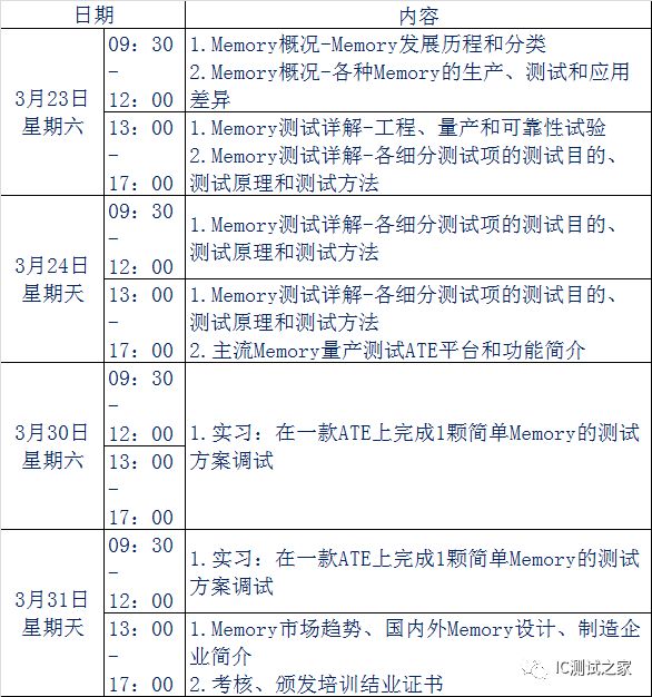 对于5G市场十倍于4G市场的设备数量需求来讲,Memory芯片的需求量未来的出货量会持续增长,这种增长对于原本就严重缺乏专业Memory测试人员的各芯片设计、制造企业来说是一种更加严酷的挑战。 为此IC测试之家特别邀请到了自身Memory芯片测试大神开设《芯片测试专题培训--Memory IC测试详解》,欢迎感兴趣的朋友咨询、报名。