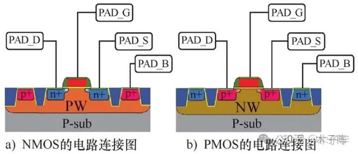 根据之前的介绍,相信大家对芯片出货之前必须做的WAT 测试有了基础的了解,今天就开始具体介绍一下上面文章提到的测试,并针对CMOS进行参数的分析,话不多说,下面就从CMOS制程中必不可少的MOS管开始。一.基础测试参数概述 1.MOS晶体管包括低压NMOS和PMOS,以及中压NMOS和PMOS,它主要测量阈值电压(Vt), 饱和电流(Idsat), 源漏击穿电压(BVD),漏电流(Ioff), 衬底电流(Isub). 2.栅氧化层完整性,主要测量参数有GOI电容(Cgox), GOI击穿电压(BVgox),GOI电性厚度(Tgox). 3.多晶硅栅场效应晶体管和第1层金属栅场效应晶体管,它的主要测量参数是多晶硅栅Vt_Poly_Field,第一层金属栅Vt_M1_Field. 4.n型结和p型结 , 结电容Cjun,结击穿电压BVjun. 5.方块电阻Rs,其主要测试参数如下表, ![]() 6.接触电阻Rc,其主要参数如下表, 7. 隔离,其主要测试参数为下表: 8. 金属电容和多晶硅电容,电容测试参数如下图, 以上参数都基于bulk wafer,随着集成电路制程工艺不断发展到纳米级以下,为改善器件性能,会引入不同的应变硅技术、HKMG技术、FD-SOI和FinFET技术。其中,MOS晶体管测试结构的版图尺寸都是按标准的沟道宽度和沟道长度来设计的,但由于不同工艺的特殊性,其器件的接法不同。对于常规Bulk wafer 来说,NMOS和PMOS的剖面图如图所示: 其4个端口栅(Gate)、源(Source)、漏(Drain)和衬底(Body)分别连到PAD_G、PAD_S、PAD_D和PAD_B,WAT测试机器通过这4个端口把电压激励信号加载在MOS晶体管,从而测得所需的电性特性参数数据。对于SOI器件,其Body接出来的方式与bulk不同。MOS是芯片中最重要的有源器件,其电性能非常重要,一般通过Vt、Idsat、BVD、Ioff和Isub来监测MOS管的性能。这里提到的都是DC测试,针对不同的应用场景会增加不同的测试,比如RF的器件会增加射频测试来验证其射频性能。 二.隔离的测试 CMOS工艺技术平台关于隔离的测试结构是梳状结构,它们测试结构分别有AA层、Poly层和金属层。隔离测试结构的结果反映了器件相互隔离的效果,器件相互隔离效果的好坏严重影响电路的性能,fab厂检测它们的WAT参数是击穿电压BV,BV是Breakdown Voltage的缩写。这三种的版图结构及测试方法类似,这里只介绍AA层,其他不再赘余。 · AA隔离,Poly隔离和金属隔离 · CMOS工艺平台的检测AA隔离的结构有n型AA隔离和p型AA隔离。其版图如下图所示: ![]() AA隔离测试结构的版图是交叉梳状非串联的两端器件。n型AA隔离测试结构必须设计在PW里面,p型AA隔离测试结构必须设计在NW里面。n型AA隔离测试结构是三端器件,它的三个端口分别是测试结构的两端和衬底(PW),它们分别连到PAD_N1、PAD_N2和PAD_B。 测量n型AA隔离击穿电压的示意图。它的基本方法是首先在测试结构的一端n型有源区加载DC扫描电压Vb,Vb从0V到12V,另一端n型有源区和衬底接地,从而测得漏电流Ib,得到Vb在Ib=1μA时的值,BV_NAA=Vb就是击穿电压。P型类似。 Poly隔离测试结构是在STI上的,并且它与衬底是完全隔离的。 金属隔离的结构包含该平台的所有金属层。影响因素 1)M1刻蚀尺寸异常; 2)淀积IMD1工艺异常。 3)Poly刻蚀尺寸异常; 4)侧墙工艺异常。 5)n+和p+离子注入异常; 6)AA刻蚀尺寸异常; 7)阱离子注入工艺异常。 三.栅氧化层测试 MOS晶体管栅氧化层完整性(GOI)的测试结构是多晶硅栅-氧化层-PW衬底(NMOS栅氧化层)和多晶硅栅-氧化层-NW衬底(PMOS栅氧化层)的电容结构,其电路连接如图所示: ![]() 两个端口栅(Gate)和衬底(Body)分别连到PAD_G和PAD_B,WAT测试机器通过这两个端口把电压激励信号加载在这个电容结构的两端,从而测得所需的电性特性参数数据。 栅氧化层在整个工艺流程里是非常关键,它的质量直接影响的MOS晶体管的电性特性,所以利用NMOS栅氧化层和PMOS栅氧化层的参数栅氧化层的电容(Cgox)、栅氧化层的厚度(Tgox)和栅氧化层的击穿电压(BVgox)检测它。 · 栅氧化层的电容(Cgox) 基本原理:在电容的一端加载AC 100kHz扫描电压,另一端接地,从而测得电容C,Cgox=C/Area,Area是电容的面积。 NMOS栅氧化层电容Cgox的基本方法是首先在栅电容的一端多晶硅栅上加载100kHz(VDD或者VDDA)扫描电压,另一端PW衬底接地,来测试电容C,Cgox=C/Area。 PMOS栅氧化层电容Cgox的基本方法是首先在栅电容的一端NW衬底上加载100kHz(VDD或者VDDA)扫描电压,另一端多晶硅栅上接地,来测试电容C,Cgox=C/Area。 ![]() · 电性厚度Tgox 测量栅氧化层电性厚度Tgox的基本原理是在电容的一端加载AC 100kHz扫描电压,另一端接地,从而测得电容C,利用公式Tgox=(εoεoxArea)/C,εo=3.9,εox=8.85418,求得电性厚度Tgox。实际上栅氧化层电性厚度Tgox是在栅氧化层电容C的基础上进行计算得到的。 · 击穿电压BVgox 栅氧化层电容的介质是SiO2。由于SiO2是绝缘体,在一般情况下是不导电的。但是当有一个外加电场存在时,随着外加电场的不断增大,当外加电场强度所提供的能量足以把一部分价带的电子激发到导带时,这时二氧化硅不再表现为绝缘性质,而是开始导电,这时所加的外加电压的值就是所测试的电容击穿电压值。 测量栅氧化层电容的击穿电压BVgox的基本原理是在电容的一端加载反向电压,另一端接地,从而测得栅漏电流Ig或者衬底漏电流Ib,得到单位面积电流强度Ig/Area或者Ib/Area,当漏电流强度达到100pA/μm2时,认为电容被电压击穿。此时加载在电容两端的电压就是击穿电压。 影响栅氧化层的因素包括以下几方面:1)阱离子注入异常;2)离子注入损伤在退火过程中没有激活;3)栅氧化层的厚度异常。 |