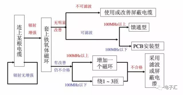 EMC主要是通过测试产品在电磁方面的干扰大小和抗干扰能力的综合评定,是产品在质量安全认证重要的指标之一。很多产品在做产品安全认证时都会遇到产品测试不合格的情况,尤其是在电磁兼容测试(即EMC测试)出错频率更是普遍。当产品一旦测试不合格,那么随之而来的肯定是EMC整改通知书。在EMC整改过程中很多管理人和技术人员并不太明白该从何处入手,今天我们就来分析EMC整改常遇到的问题和一些整改建议。首先我们来从EMC测试项目构成说起,EMC主要包含两大项:EMI(干扰)和EMS(产品抗干扰和敏感度)。当然这两大项中又包括许多小项目,EMI主要测试项:RE(产品辐射,发射)、CE(产品传导干扰)、Harmonic(谐波)、Ficker(闪烁)。EMS主要测试项:ESD(产品静电)、EFT(瞬态脉冲干扰)、DIP(电压跌落)、CS(传导抗干扰)、RS(辐射抗干扰)、Surge(雷击)、PMS(磁场抗扰)。通过这些测试项目我们不难看出EMC测试主要围绕产品的电磁干扰和敏感度两部分,如果一旦产品不符合安全认证标准需要EMC整改的时候我们可以通过降低其材料和零部件进行整改。 一、EMC整改意见: 1、在拿到整改意见书以后,需要提前定位好EMC整改计划。没有定位好计划就去盲目的整改产品就像无头的苍蝇一样到处乱动,这样只会增加整改的成本。 2、定位手段,对于这里小编觉得主要可以分为两点。第一:直觉判断,需要完全依托工程师的直觉和经验来进行判断。第二:比较测试,根据测试仪器所提供的数据来进行分析问题。 二、EMC整改流程: 1、RE超标整改流程: 2、电线电缆超标整改流程: 3、信号电缆整改流程: 4、屏蔽体泄漏整改流程: 三、EMC整改的一些小建议 1、电容的滤波作用 即频率f越大,电容的阻抗Z越小。 当低频时,电容C由于阻抗Z比较大,有用信号可以顺利通过; 当高频时,电容C由于阻抗Z已经很小了,相当于把高频噪声短路到GND上去了。 2、电容滤波在何时会失效 整改中常常会使用电容这种元器件进行滤波,往往有“大电容滤低频,小电容滤高频”的说法。 以常见的表贴式MLCC陶瓷电容为例,进行等效模型如下: 容值10nF,封装0603的X7R陶瓷的模型参数如下: 由于等效模型中既有电容C,也有电感L,组成了二阶系统,就存在不稳定性。对电路回路来说,就是会发生谐振,谐振点在如下频率处: 下图是谐振曲线的示例: 即常说的在谐振点前是电容,谐振点之后就不再是电容了。 3、LC滤波何时使用 如果串联电感L,再并联组成C,就形成了LC滤波: 单独一个电容C是一阶系统,单独一个电感L也是一阶系统,在幅值衰减斜率是-20dB。但LC组成的二阶系统,幅值衰减斜率是-40dB,更靠近理想的“立陡”的截止频率的效果,即滤波效果更好。 4、PWM频率到底是多少 往往提到PWM,比如会说用20kHz PWM驱动电机等。但实际上,这个20kHz仅代表PWM的脉冲周期是50us: 那么所谓的20kHz PWM在频域上的频率点落在哪里呢,如下公式: 对于阶跃信号来说,由于上升时间tr无穷小,则频率f无穷大。当频率高了之后,寄生参数则不能再忽略,会引发很多谐振的问题。 从信号上来看,就是很陡峭的阶跃信号会有过冲和振荡的问题。简单来说就是频率f越大,则噪声所占的频率就会越宽泛,即EMC特性就会越差。 5、如何将原理图和PCB对应起来 由于细分工种的问题,原理图和PCB被割裂开来,由两组人进行分工作业: 例如在原理图上有如下的电路: 其隐含一个问题就是在PCB上其实V1的负极和C1的负极是有一条线(PCB layout工具软件中用的词比较准确,Trace,踪迹/轨迹)。 往往在设计阶段A->B->C是都会关注的。如果EMC出现问题,除了要在原理图上查找电路参数的问题,还需要特别关注C->D,即回流路径。 如果回流路径不顺畅,会造成信号的畸变: 比如在EMC试验时,MCU的ADC采集到的信号被干扰到了,则除了在原理图上分析外,在PCB上讲该信号高亮出来,然后再耐心寻找该信号的回流路径是否有不顺畅的地方: 对着信号线头脑中想象回流路径,有点意识流的感觉。 6、总结 |