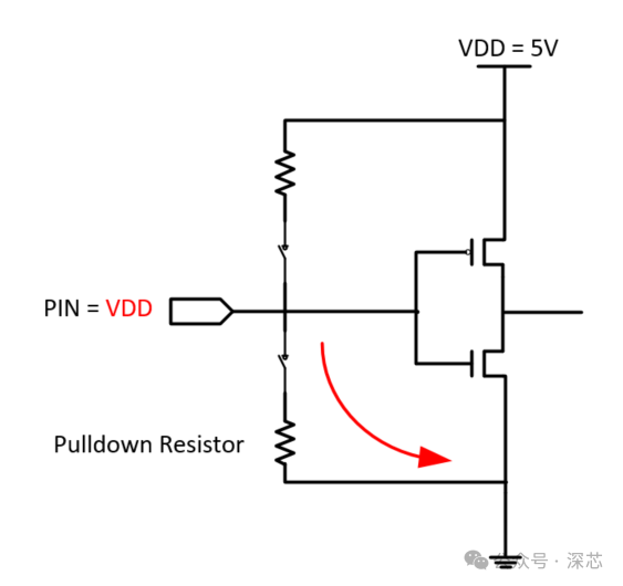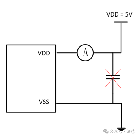 做芯片测试的同学经常会涉及到Continuity测试、Leakage测试、GPIO drive capability测试、GPIO pullup/pulldown resistor测试、standby idd、run idd、IDDQ、MBIST、SCAN等测试,小编在此带大家总结一下这些测试的基本原理。1. Continuity测试(即OS测试) 该测试主要是测试芯片的open/short特性,即测量芯片pin脚对VDD或者GND有没有短路(short)或断路(open)。 当测某一pin的OS时,应使VDD=0V,同时其他pin的电压也全为0。下图为测某一pin对GND的OS测试时的示意图,ATE会从pin抽一个100uA的电流,下方的二极管导通,在正常工作的情况下,测得的电压应该在-0.2V~-0.7V之间。 ![]() 下图为测某一pin对VDD的OS测试时的示意图,ATE会从pin灌入100uA的电流,上方的二极管导通,在正常工作的情况下,测得的电压应该在0.2V~0.7V之间。 ![]() 如果有short情况发生,测得的电压一般接近0V;如果是open的情况,则测得的电压一般为5V/-5V(测试程序中设置的钳位电压)。 2. Leakage测试即漏电流测试。在该测试过程中一般将芯片正常上电,然后将pin配置成input状态,给pin上分别灌入VSS(0V)和VDD的电压,测量该pin上的电流,一般测量值为-1uA~1uA。 ![]() 当pin电压等于VDD时,测得的电流为对GND的漏电流当pin电压等于VSS时,测得的电流为对VDD的漏电流 3. GPIO drive capability测试即为GPIO的驱动能力测试 GPIO drive capability一般对应datasheet中的VOH/VOL或者IOH/IOL指标,其实VOH/VOL和IOH/IOL是同一个指标,只不过测试方法不同。 下图为VOH或者IOH的测试示意图。将GPIO配置成output模式,并且输出高电平(逻辑1)。当测量IOH时,则ATE在pin上施加VDD-0.8V电压,此时该pin上电流即为IOH。当测量VOH时,则ATE从该pin拉5mA/20mA电流(视该pin的驱动能力而定),此时该pin上测得的电压即为VOH。 ![]() 下图为VOL或者IOL的测试示意图,同样将GPIO配置成output模式,只不过此时输出低电平(逻辑0)。当测量IOL时,则ATE在pin上施加0.8V电压,此时该pin上电流即为IOL。当测量VOL时,则ATE从该pin灌入5mA/20mA电流(视该pin的驱动能力而定),此时该pin上测得的电压即为VOL。 ![]() 4. Pullup/Pulldown resistor测试 该测试目的是测试芯片引脚内部的上拉/下拉电阻的大小。在测试时该pin需要配置成input模式。 下图为上拉电阻的测试示意图。当测试上拉电阻时需将该pin配置成input状态,同时打开pullup设置,给pin脚施加电压0V,测量pin脚上电流,然后根据R=U/I可以计算出上拉电阻的阻值。 ![]() 下图为下拉电阻的测试示意图。当测试下拉电阻时需将该pin配置成input状态,同时打开pulldown设置,给pin脚施加VDD电压5V,测量pin脚上电流,然后根据R=U/I可以计算出下拉拉电阻的阻值。 ![]() 5. standby idd 对于MCU来说,standby idd即是在standby mode下测量VDD pin上电流。Standby mode一般为芯片的低功耗模式,芯片内部大部分时钟均处于关闭的状态,只保留LPO时钟作为芯片的唤醒时钟。需要注意的是一般测standby idd时候需要将VDD pin上并接的电容去掉,因为电容存在充放电的过程,可能会对电流的测量产生影响。 ![]() 6. Run iddRun idd的测试与standby idd基本一致,只不过会让芯片处于run mode,有些会要求将外设的时钟打开进行测试。 7. IDDQIDDQ即静态电流,指CMOS电路在稳定状态(无信号跳变)下的电源电流。在无缺陷的CMOS电路中,静态电流应接近零(仅有漏电流,一般微安级)。正常CMOS逻辑在稳态下,PMOS和NMOS管不同时导通,理论静态电流很小。缺陷影响:物理缺陷(如栅极氧化物短路、电源/地桥接)会形成额外电流路径,导致IDDQ升高。 8. MBISTMBIST一般指SRAM的测试,采用芯片内部自建的一些测试逻辑来进行测试,机台只需要通过JTAG接口下达测试的指令,即可从TDO接口获取测试结果。MBIST测试结束后一般会有两个信号输出BIST_DONE和BIST_FAIL。 9. SCANscan就是把普通寄存器替换成可扫描的寄存器,目的是创建control和observation点,然后把所有的可扫描寄存器连接在一起串成扫描链(scan chain),利用扫描链,工具自动产生测试patterns,让寄存器处于一个特定的值(control),然后将期望的值移出来进行对比(observe),来判断芯片是否有缺陷。SCAN测试一般分stuck-at和transition测试,stuch-at测试覆盖固定电平缺陷,但对时序敏感缺陷无效;transition则主要针对时序路径的延迟缺陷。 |