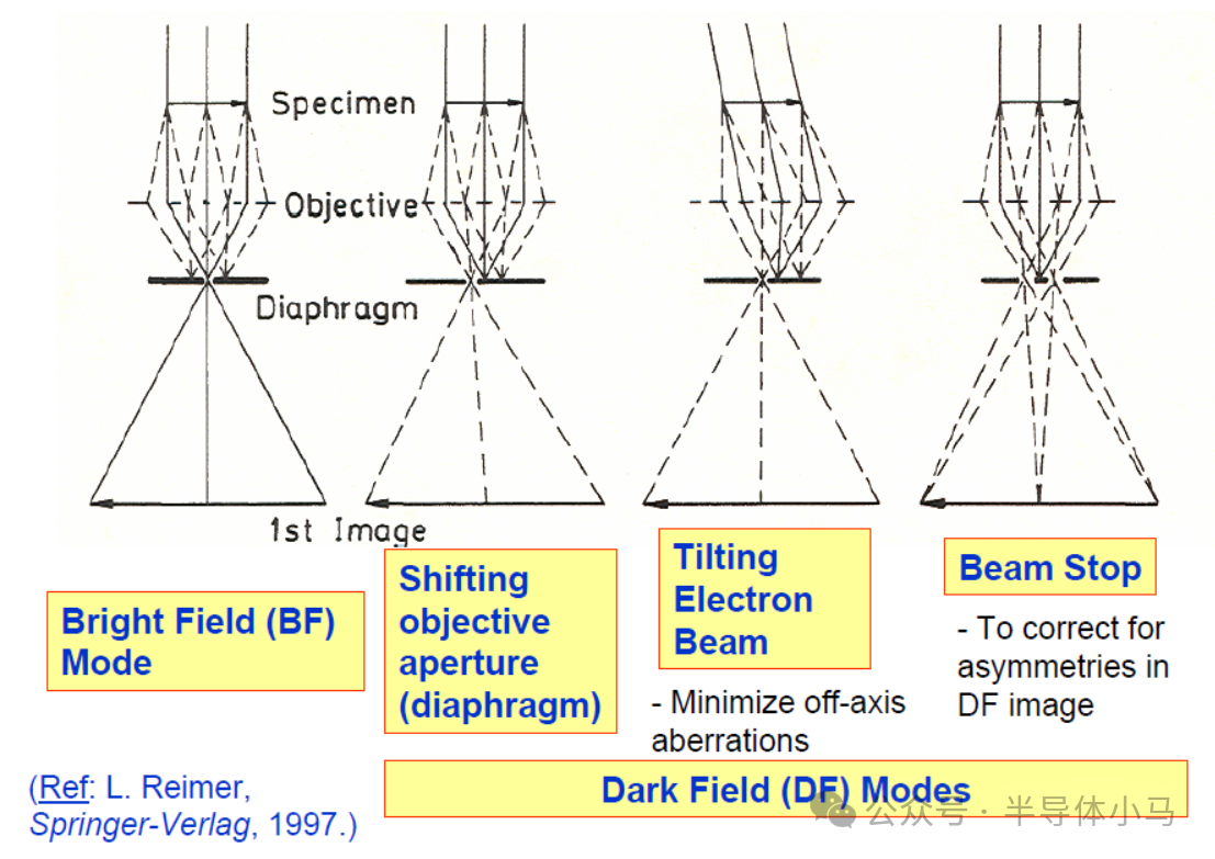 一、TEM 简介1. TEM 的加速电压远高于扫描电子显微镜(SEM); 2. 中压电镜加速电压为 200-500 kV,相比低压电镜(80-120 kV)具备更优的透射效果和分辨率,超高压电镜加速电压可达 500 kV-3 MV; 3. 与 SEM 一致,TEM 电子枪通过热电子发射、肖特基发射或场发射产生电子(高亮度、高相干性要求时采用场发射); 4. 2-3 级聚光镜系统可调节样品的电子照明区域; 5. 电子束穿过 5-100 nm 薄样品后,其强度分布通过 3-4 级透镜系统成像于荧光屏。 6. 7. △更多更详细的资料扫码获取 二、TEM 仪器结构核心部件 灯丝、阳极、韦氏筒、电子枪偏转线圈、聚光镜 1、聚光镜 2、聚光镜消像散器、聚光镜光阑、摇摆线圈、对中线圈、扫描线圈、物镜消像散器、样品、物镜、物镜光阑、选区衍射光阑、中间镜 1、中间镜 2、投影镜、快门、荧光屏 / 曝光计、相机。