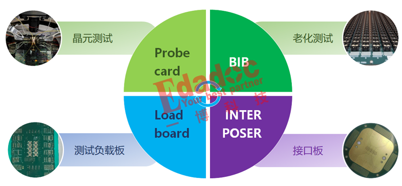 芯片作为国之重器,不仅是现代科技发展的核心引擎,更是国家战略安全和经济自主的重要基石。随着 5G、AI 芯片测试频率突破 112Gbps,ATE 的 PCB 板面临着前所未有的技术挑战,其加工过程堪称 “在毫厘之间雕琢极致”,每一步都彰显着工匠精神的严谨与执着。在芯片产业的精密链条中,ATE(自动测试设备)的 PCB 板是隐藏的 “神经中枢”,它承载着芯片测试的核心使命,其性能直接决定着芯片的命运。 精度是 ATE 的 PCB 板加工的第一道 “生死线”。 接下来让我们一起走进一博珠海PCB工厂,看一看ATE测试板的有哪些难点,一博科技的工程师们怎么在方寸之间,绘出传奇。 名词解释 ATE,全称Automated Test Equipment,是晶圆和芯片封装之后,进行功能和性能自动化测试的设备。ATE设备可以进行芯片的参数测试、功能测试、性能测试、故障检测、可靠性测试等,在半导体的制造过程中扮演着至关重要的角色。 ATE主要测试目的是什么? 功能测试 测试芯片的参数、指标、功能,就像十月怀胎,生下的宝贝是骡子是马,拉出来溜溜。 性能测试 由于芯片在生产制造过程中,有无数可能的引入缺陷的步骤,即使是同一批晶圆和封装成品,芯片也各有好坏,所以需要进行筛选. 所以需要进行筛选,就像是鸡蛋⾥挑石头,把“石头”芯片丢掉。 可靠性测试 芯片通过了功能与性能测试,得到了好的芯片,风霜雨雪,高温或潮湿湿,静电等对芯片的影响。芯片能用⼀个月、一年还是十年等等,这些都要通过可靠性测试进行评估。 下图为芯片的生产过程及需要测试的具体项目。做⼀款芯片最基本的环节是芯片设计->流片->封装->测试,测试是芯片生产中最重要的一环。 芯片常用的测试方式? 板级测试、晶圆CP测试、封装后成品FT测试、系统级SLT测试、可靠性测试等 不同的测试方法需要不同的测试板 板级测试(如EVB开发板) 主要应用于功能测试,使用PCB板+芯片搭建⼀个“模拟”的芯片⼯作环境,把芯片的接⼝都引出,检测芯⽚的功能,或者在各种严苛环境下看芯片能否正常⼯作。EVB板是一种专门设计用于方便使用者评估、验证和开发集成电路或系统的板卡。为工程师提供了一个实验平台,用于测试芯片功能、性能参数以及软硬件的互操作性。 探针卡(Probe Card) 探针卡用于测试未切割和未封装的半导体器件,通过对晶圆上的每个芯片进行电气测试,筛选出参数在要求范围内的器件进行封装。常应用于功能测试与性能测试中,了解芯片功能是否正常,以及筛掉芯片晶圆中的故障芯片。自动测试设备【ATE】+探针台【Prober】+仪器仪表,需要制作的硬件是探针卡【Probe Card】。 负载板(Load Board) 在Final Test测试设备上面需要用到负载板,负载板用于在器件封装后对器件进行功能或性能测试,筛选出封装后的不良器件。对于有高速接口的IC来讲,对应的负载板通常会有严格的阻抗要求。⾃动测试设备【ATE】+机械臂【Handler】+仪器仪表,需要制作的硬件是测试板【Loadboard】+测试插座【Socket】等。 老化测试板(Burn-in Board,简称BIB) 老化板(BIB)用于封装后芯片的老化测试,如热循环或加速开关循环,以暴露器件的早期失效故障。老化板的PCB材料必须能够承受长时间和反复的高温环境暴露,具有极高的可靠性。 转接板(interposer) Interposer是将Probe PCB 的讯号布线透过Interposer(载板)中介层的转换让Probe Head的探针可接收到讯号,且也可将讯号顺利传送至测试机台进行判读。 系统级测试(SLT) 是模拟芯片在真实的使用环境中运行,常应用于功能测试、性能测试和可靠性测试中,常常作为成品FT测试的补充而存在,顾名思义就是在⼀个系统环境下进行测试,就是把芯片放到它正常⼯作的环境中运行功能来检测其好坏,缺点是只能覆盖⼀部分的功能,覆盖率较低所以⼀般是FT的补充⼿段。 需要应用的设备主要是:机械臂【Handler】,需要制作的硬件是系统板【System Board】+测试插座【Socket】。 ![]() 从上图可以看出,prober card和interposer为CP端测试,也就是晶圆端的测试。CP【Chip Probing】顾名思义就是用探针【Probe】来扎Wafer上的芯片,把各类信号输⼊进芯片,把芯⽚输出响应抓取并进行比较和计算,挑选出最优的芯片。 Load board 和BIB板为芯片封装后FT端的测试。封装后成品FT测试,常应⽤与功能测试、性能测试和可靠性测试中,检查芯⽚功能是否正常,以及封装过程中是否有缺陷产⽣,并且帮助在可靠性测试中用来检测经过“⽕雪雷电”之后的芯片是不是还能⼯作。 探针卡在CP测试中用于连接测试机和Die上的Pad,通常作为Loadboard的物理接口,在某些情况下ProbeCard通过插座或者其它接口电路附加 到Loadboard上。 应用 晶元切割前,透过pc可以测试晶圆品质,避免不良产品产生封装成本。晶圆检测是指在晶圆出厂后进行封装前,通过探针台和测试系统配合使用,对晶圆上的芯片进行功能和性能的测试。成品测试是指芯片完成封装后,通过分选机和测试系统配合使用,对芯片进行功能和电参数性能测试,保证出厂的每颗芯片的功能和性能指标能够达到设计规范要求。 讲到ATE,就不得不提一博珠海PCB制板厂,专注于高端快件,提供高品质的高多层、高速、高精密、HDI等PCB生产制造,在核心技术指标方面,目前可以加工2-120层,DUT平整度≤50um,翘曲度≤0.3%,局部镀硬金,针对 20 层 PCB 产品,其生产交付周期最快可压缩至 8 天内,有效满足客户对高端 PCB 产品的高精度、快交期需求