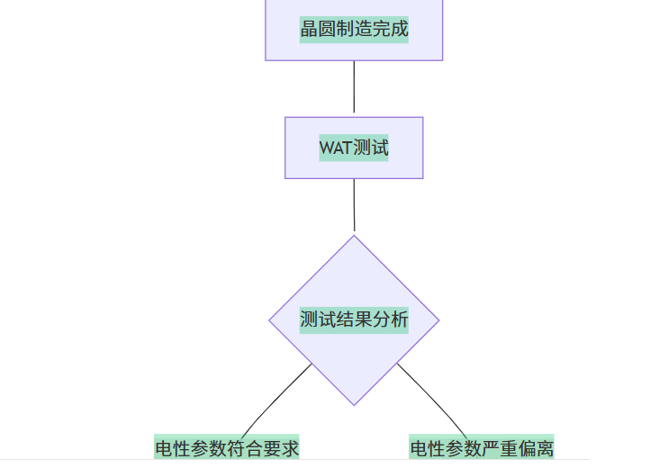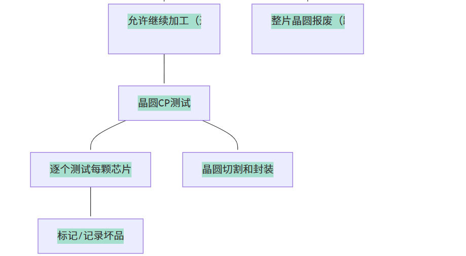 CP测试定义晶圆CP(Chip Probing)测试,全称是晶圆级芯片测试,也称为探针卡测试 或 中测。它是在晶圆制造完成之后、切割和封装之前,通过探针卡与芯片的焊盘接触,对晶圆上的每一颗芯片进行电性功能和性能参数的初步测试。和WAT测试相比,两者处于不同工艺位置,具体流程如下图: ![]()