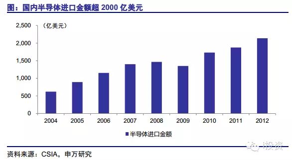 2012年我国半导体进口金额已经超2000亿美元,现在每年半导体进口金额已经超过石油进口金额,提高半导体国产化比例迫在眉睫。