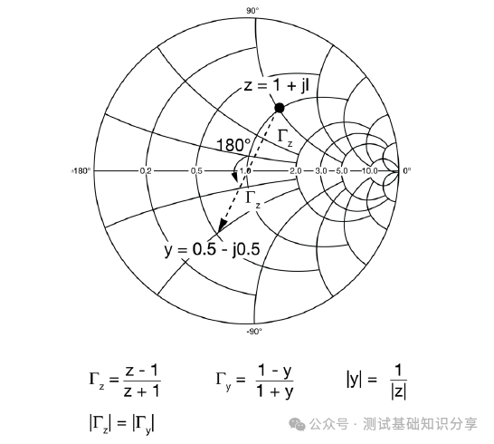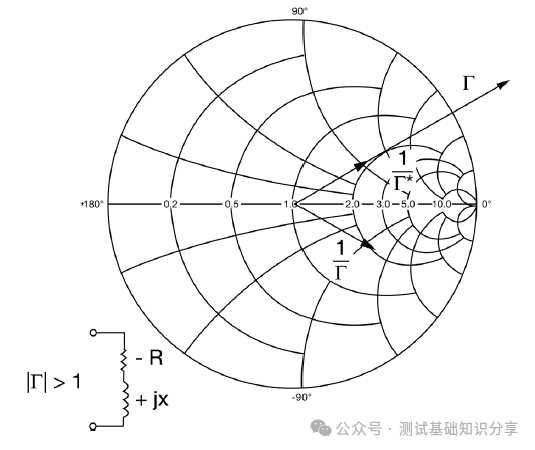 阻抗匹配什么意思?阻抗匹配(impedance matching)指通过调整输入阻抗和输出阻抗来使得电子器件满足一定条件,通常该条件是使得系统传输功率最大或者使得信号反射最小。例如,再无线传输系统中需要匹配射频发射设备和接受天线的阻抗以此来实现传输功率最大化。 阻抗匹配的作用 · 实现最大功率传输:对信号源和负载进行阻抗匹配,可以实现传输功率最大化,提高能量转换性能; · 实现最小反射损耗:匹配阻抗可以减少信号在电路中的反射,提高信号质量和传输效率; · 优化系统性能:阻抗匹配可以确保信号在系统中的稳定传输,避免信号失真和性能下降。阻抗匹配对于获得理想的 VSWR(电压驻波比)非常重要。 · 在PCB测试中,减少高频噪声以及边沿过冲。如果一个信号的边沿非常陡峭,则含有大量的高频成分,将会辐射干扰,另外,也容易产生过冲。串联电阻与信号线的分布电容以及负载输入电容等形成一个RC电路,这样就会降低信号边沿的陡峭程度。还可以减少高频反射以及自激振荡。当信号的频率很高时,则信号的波长就很短,当波长短得跟传输线长度可以比拟时,反射信号叠加在原信号上将会改变原信号的形状。如果传输线的特征阻抗跟负载阻抗不相等(即不匹配)时,在负载端就会产生反射,造成自激振荡。PCB板内走线的低频信号直接连通即可,一般不需要加串行匹配电阻。 当阻抗不匹配时,就要通过阻抗变换使负载阻抗和源阻抗相等,以减小反射。经常是使用史密斯圆图阻抗匹配。反射系数是一个矢量,所以反射系数相同的点会形成一个圆,一系列反射系数形成反射圆图。 反射圆图上的每一个点都有唯一的阻抗特性,这样反射圆图和阻抗圆图重叠形成史密斯圆图。 R值表示等电阻圆, Z值表示等电抗圆有, 交点为Z,该点半径为反射系数模值,夹角为反射系数相位。 请参考右下方的史密斯圆图,上面左边的点表示短路点,阻抗为0,反射系数是1,发生全反射,反射角为180度。中间点为匹配点,阻抗为特性阻抗,反射系数为0。右边点位开路点,阻抗无穷大,反射系数为1,同样也发生全反射,反射角为0度。上面是电感区,下面是电容区,然后上面还有等电阻圆,等点抗圆,等电导圆等等。 注意: 阻抗用直坐标系的话,需要看到无穷大的阻抗横轴和虚部纵轴,在仪表里显示是不现实的,所以用圆图。 圆图的周期为传输线信号波长/2。圆图旋转一圈代表传输线传输电长度为l/2,半圈为l/4。 史密斯圆图 The Smith Chart 贝尔实验室工程师菲利普·史密斯 (Phillip Smith) 设计了一种图解法,用于求解微波理论中常见的重复方程式。 例如反射系数方程式 Γ = (Z – 1)/(Z + 1)。由于该方程式中的所有值都是复数,因此使用史密斯图解法可以简化求解该表达式的繁琐过程。 该图本质上是两个平面——Z(或阻抗)平面和 Γ(或反射系数)平面——之间的映射。我们都熟悉阻抗平面——一个具有实轴和虚轴的直角坐标平面。任何阻抗都可以绘制在这个平面上。在本讨论中,我们将阻抗平面归一化为特性阻抗。 让我们在这个归一化平面中选取几个值,看看它们如何映射到 Γ 平面。令 z = 1。在 50 欧姆系统中,这意味着 Z = 50 欧姆。对于这个值,|Γ| = 0,即Γ平面的中心。 现在我们令z为纯虚数(即z = jx,其中x可以从负无穷到正无穷变化)。由于Γ = (jx – 1)/(jx + 1),|Γ| = 1,其相位角在0到360度之间变化。这在Γ平面上描绘出一个圆(图29)。对于正电抗,即jx为正,阻抗映射到上半圆。对于负电抗,阻抗映射到下半圆。上半圆区域为感性区域,下半圆区域为容性区域。 现在让我们看一些其他的阻抗值。一条通过实轴上z = 1点的恒阻线,在Γ平面上映射成一个圆。 上半圆表示阻抗为1 + jx,即感性区域; 下半圆表示阻抗为1 - jx,即容性区域。 恒电抗线 r + j1 也以圆的形式映射到 Γ 平面上。当我们接近阻抗平面的虚轴时,Γ 接近单位半径圆。当我们穿过虚轴时,Γ 平面上的恒电抗圆会超出单位半径圆。 现在我们回过头来观察 z 的实数,我们可以看到在 z = -1 处,Γ = ∞。当 z 为实数且小于 1 时,我们会向外移动到 Γ 平面上的单位半径圆。当 z 的实部变为负值时,Γ 会继续沿着这个半径无限大的圆移动。单位半径圆外的整个区域表示实部为负的阻抗。稍后我们将在处理晶体管和其他通常具有负实数阻抗的有源器件时用到这个事实。 在阻抗平面上,恒电阻线和恒电抗线相交。它们也会在 Γ 平面上相交。阻抗平面上的点与 Γ 平面上的点之间存在一一对应关系。 通过继续绘制其他恒定电阻和电抗圆,就可以完成史密斯圆图。 史密斯圆图的应用 Applications of the Smith Chart 现在让我们尝试用史密斯圆图举几个例子来说明它的实用性。 1. 阻抗到导纳的转换 将归一化阻抗 1 + j1 转换为导纳可以很容易地完成。让我们首先在史密斯圆图上绘制表示 z 值的点(图)。从这些关系中,我们可以看出,虽然导纳的大小是阻抗大小的倒数,但 Γ 的大小相同,但其相位角改变了 180 度。在史密斯圆图上,Γ 矢量将旋转 180 度。然后可以将该点读作导纳。 我们可以用另一种方法实现阻抗到导纳的转换。与其将 Γ 矢量旋转180度,不如将史密斯圆图旋转180度。我们可以将旋转后的圆图称为导纳图,将原始圆图称为阻抗图。这样,我们就可以直接将任何阻抗转换为导纳,反之亦然。 2. 实部为负的阻抗 现在我们来看看实部为负的阻抗。这又是一个传统的史密斯圆图,由