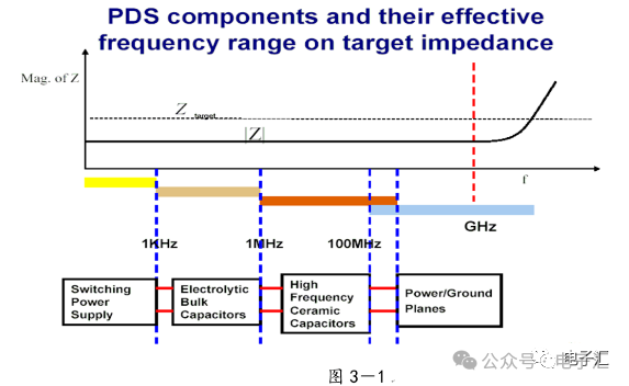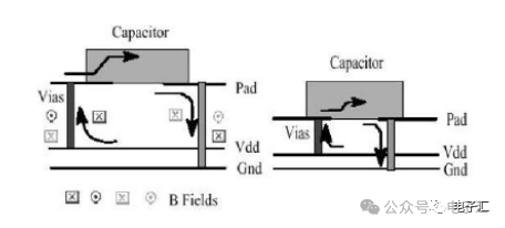 本文以高速系统的信号/电源完整性分析和EMC分析的为基本出发点,着重介绍了高速PCB的信号和电源完整性分析的基本要领和设计准则,通过EDA分析工具实现PCB的建模与参数提取;通过电磁场分析工具完成网络参数定量分析,从最基本的设计方法入手,提出了高速PCB的信号/电源系统设计参数优化方案,指出了信号/电源完整性仿真设计和EMC设计的内在联系,最后介绍了利用EDA仿真工具和EMC测试验证相结合解决单板PCB设计的EMI问题的成功范例,希望本文总结的经验能给予正在从事高速系统仿真的设计开发人员和EDA设计人员解决此类问题的基本思路与方法。关键词 非理想化电容建模、信号/电源完整性分析、EMC分析、应用举例、问题总结 引言 当今的高速PCB设计领域,由于芯片的高集成度使PCB的布局布线密度变大,同时信号的工作频率不断提高,信号边沿(Tr)的不断变陡,由此而引发的信号完整性和电源完整性问题给EDA设计人员和硬件开发人员带来前所未有的挑战,信号/电源完整性问题处理不当同时会带来一系列的EMC问题,给产品的可靠性造成危害。目前,基于Cadence公司SQ的板级与系统级互连仿真已经在广泛应用,在硬件设计流程中引入了SI/PI/EMI的仿真分析环节。信号完整性与电源完整性分析做的较成功的PCB,电磁兼容性(EMC)也明显改善。 信号/电源完整性分析通过对PCB的信号互连与电源分配系统(PDS)分析,使用EDA与电磁场分析软件找出PCB的噪声点并加以抑制,通过PCB的优化设计改善层间噪声与电源层和地线层之间的阻抗。降低信号的反射和串扰;改进信号的回流路径,降低电源分配系统阻抗,同步开关噪声,消除PCB上关键点和关键频率的谐振,合理放置去耦电容改善电源地的阻抗与谐振,使用屏蔽过孔等措施减小PCB的边缘辐射。 随着信号的Tr变快,产品的EMC问题成为EDA设计的最大难点。EMC问题由来已久,涉及面较广,随着信号速率的提高和芯片尺寸的减少,传统的EMI设计方法显得力不从心。解决EMC问题和解决其它SI问题显著的不同点在于EMC更依赖于测试,或者是仿真与测试过程两者的融合,不同类型的EMI包括来自于信号互连的连接器,电缆,PCB的连线以及边缘辐射等。 电源和信号完整性对EMI的性能有着直接的影响,从PCB设计阶段控制EMI,能起到事半功倍的作用。我们通常采用下列几种方法来分析并改进信号和电源完整性,从而减小EMI辐射。 1. 减少电源地平面间噪声-电源完整性分析 2. 优化电源地系统阻抗-电源完整性分析 3. 降低串扰和反射-信号完整性分析 4. 改善同步开关噪声-信号完整性分析 5. 减少边缘辐射-信号完整性/电源完整性分析 一、 关于电源完整性仿真的电容建模 1、非理想旁路电容的定义: 在电源系统的设计中,我们经常用到以下的三类电容: 1)旁路电容:主要作用是给交流信号提供低阻抗的回流路径; 2)去耦电容:增加电源和地的交流耦合,减少交流信号对电源的影响; 3)滤波电容:用于电源滤波电路中,消除电源纹波; 在电源完整性仿真中,我们主要研究对象是非理想化的旁路电容。对于理想的电容来说,不考虑寄生电感和等效串联电阻的影响,那么我们在电容设计上就没有任何顾虑,电容的值越大越好。但实际情况却与理论分析相差很远,并不是电容越大对高速电路越有利,反而在高频段往往采用小电容,电容的材料和制造工艺也有要求。要理解这个问题,我们首先必须了解实际电容器本身的特性,在频率很高时,电容不再被当作理想的电容看待。电容的寄生参数的影响不能忽略。考虑到电容具有一定的物理尺寸,以及起连接作用的安装焊盘和过孔,其寄生参数包括一个串联电感和串联电阻,由此得到如图1-1的电容模型。 图1-1 对电容的高频特性影响最大的则是ESR和ESL,我们通常采用图1-1中简化的电容模型。电容也可以看成是一个串联的谐振电路,当它在低频的情况(谐振频率以下),表现为电容性的器件,而当频率增加(超过谐振频率)的时候,它渐渐的表现为电感性的器件。也就是说它的阻抗随着频率的增加先增大后减小,等效阻抗的最小值发生在串联谐振频率处,这时候,电容的容抗和感抗正好抵消,表现为阻抗大小恰好等于寄生串联电阻ESR,变化曲线如图1-2所示: 图1-2 从谐振频率的公式可以看出,电容大小和ESL值的变化都会影响电容器的谐振频率。由于电容在谐振点附近的阻抗最低,所以设计时尽量选用FR和实际工作频率相近的电容。如果工作的频率变化范围很大,则可以混合使用不同容值和FR电容,即同时选择一些FR较小的大电容和FR较大的小电容。 2、PI仿真电容及分布参数的建模: 非理想旁路电容由ESR、C、ESL、引线和过孔等几部分组成,见图1-3所示。 图1-3 在高速PCB设计中,我们常用的电容引线方式有以下几种,为定量分析各种引线方式的影响和建模的需要,我们从正在设计中的单板中提取了用于分析的样板,见图1-4所示。 图1-4 图1-5 常见的电容的引线方式有以下5种,如图1-6所示,其中第5种在焊盘上开孔目前工艺不推荐,在此只作分析,首先,我们分别计算了VCC_3.3V到电容管脚的引线和过孔的电感, 图1-6 得到以下5组数据(单位:亨利): L001 2.82101E-010 L002 2.70197E-010 L003 8.36196E-010 L004 9.23669E-010 L005 3.65286E-010 为了尽量减小引线电感,在设计中我们可以优先采用第2种引线方式,其中第4种引线方式在传统的PCB设计中广泛采用,由于这种引线方式会带来较大的引线电感,建议在高