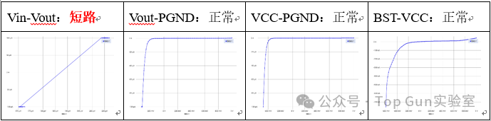 通过IV特性测试,我们发现模块的Vin(输入电压)与Vout(输出电压)管脚之间存在短路现象。这直接表明电源通路中的主开关元件或相关保护电路已发生击穿。