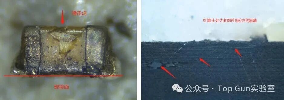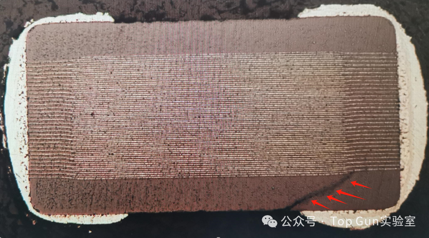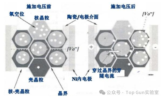多层陶瓷电容器(MLCC)凭借其高容积比、低等效串联电阻(ESR)以及卓越的高频特性,已成为现代电子电路中应用最广泛的被动元件之一。然而,MLCC本质上是一种陶瓷脆性元件,其多层交替堆叠的结构(陶瓷介质层与内电极层)在面对复杂的机械、热、电应力及恶劣环境时,表现出较高的失效敏感性。深入解析MLCC的典型失效形貌,不仅有助于快速定位故障根源,更能为产品设计优化、制造工艺改进及可靠性提升提供科学依据。下文基于行业典型案例与材料科学机理,对MLCC的各类失效模式进行系统化梳理与深度解析。 1、电应力导致的失效熔融通道延伸:以耐压最薄弱的点击穿点为中心,熔融痕迹向两侧内电极呈放射状或线性延伸。 ![]() 介质二次损伤:击穿短路发热导致发生二次损伤,形成介质分层形貌。 ![]() ![]() 2、机械应力失效 机械应力失效是MLCC在组装与服役过程中最频发的模式。由于陶瓷基体抗弯曲能力较差,当外部载荷超过其断裂韧性时,会诱发破坏性裂纹。 弯曲应力失效形貌:MLCC在PCB上焊接后,其陶瓷本体与PCB之间形成一个刚性连接。当PCB发生弯曲、扭曲或受到冲击时,MLCC会产生裂纹,裂纹通常起源于MLCC的端电极附近,并以大约45°角向芯片内部延伸。 ![]() 撞击损伤形貌:不同于单纯的弯曲裂纹,此类失效在外观上通常可见明显的机械撞击痕迹。失效短路点多靠近护片区域,且在微观上表现为多层内电极的熔融与挤压变形。 ![]() ![]() 3、制造缺陷相关形貌制造过程中的工艺偏差常引入内部隐患。其中,电极结瘤是极具代表性的缺陷形貌,表现为内电极局部异常增厚或形成瘤状突起。此类结构会导致局部电场强度剧增(尖端放电效应),成为电击穿的诱发点。 ![]() 4、热应力失效热应力失效源于MLCC内部各材料(陶瓷、金属内电极、焊料)之间热膨胀系数(CTE)的不匹配,在温度剧烈波动时产生瞬态热机械应力。典型的形貌:月牙形裂纹,在受热不均或热冲击(如手工补焊)时,MLCC表面或内部常形成弧形或月牙状的应力裂纹。 ![]() 5、材料缺陷失效机理:氧空位(镍电极陶瓷电容器) 镍电极在高温环境下极易氧化,镍电极陶瓷电容器在烧结过程中必须使用还原性气氛,此时瓷粉主体的钛酸钡容易失去氧,形成氧空位,导致介质材料半导体化。 电容器在还原气氛烧结,产生氧空位Vo及电子(e),致使导电性增加,绝缘电阻降低。 由上图可知,在高温加电压作用下,氧空位会开始活跃,并穿越晶界往负极移动使得内电极/陶瓷介面阻抗下降,导致绝缘破坏。所以降低电容器中氧空位的浓度对提高其绝缘电阻至关重要。在烧结过程中,通过高温补氧的方式对氧空位进行氧回填是目前避免氧空位形成的最切实有效的办法。当然,补氧不是越多越好,补氧过多会造成MLCC内电极氧化。 |