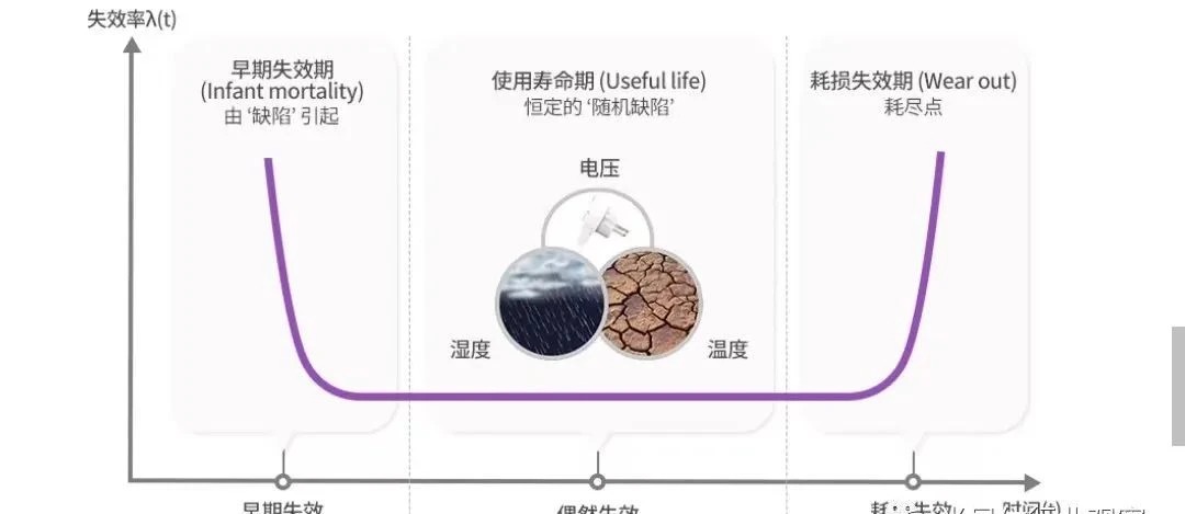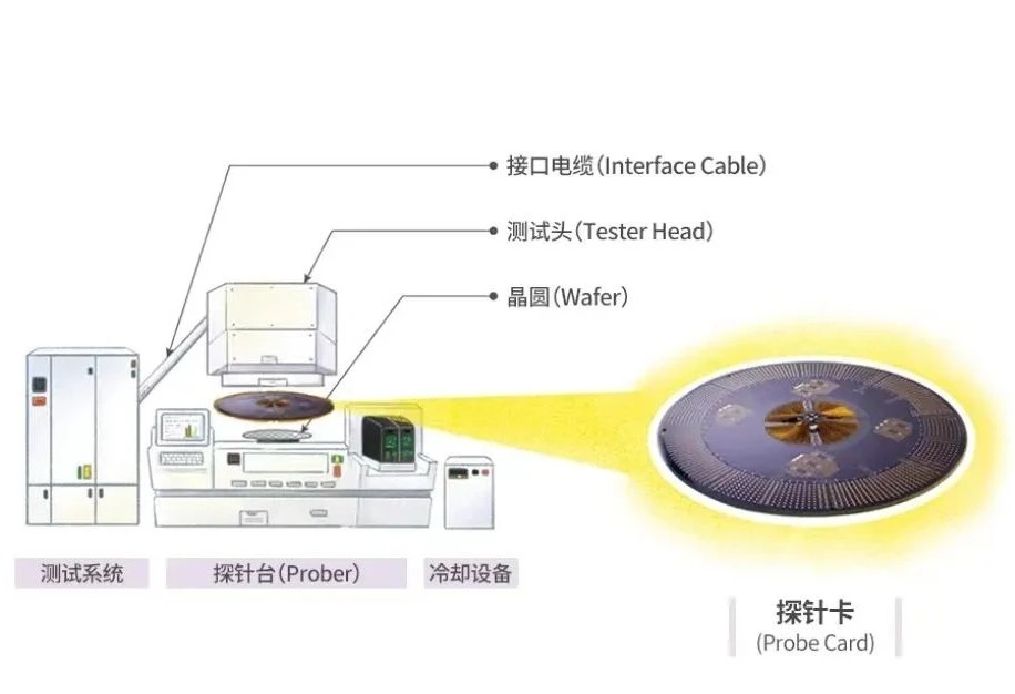 制作半导体产品的第一步,就是根据所需功能设计芯片(Chip)。然后,再将芯片制作成晶圆(Wafer)。由于晶圆由芯片反复排列而成,当我们细看已完成的晶圆时,可以看到上面有很多小格子状的结构,其中一个小格子就相当于一个芯片。芯片体积越大,每个晶圆可产出的芯片数量就越少,反之亦然。半导体设计不属于制程工序,半导体产品的制程工序大体可分为晶圆制作、封装和测试。其中,晶圆制作属于前端(Front End)工艺;封装和测试属于后端(Back End)工艺。晶圆的制作工艺中也会细分前端和后端,通常是CMOS制程工序属于前端,而其后的金属布线工序属于后端。 ![]() 如图1所示,封装和测试工艺的第一步就是晶圆测试。封装后,再对封装进行测试。 测试的种类 测试工艺可依据不同的测试对象,分为晶圆测试和封装测试;也可根据不同的测试参数,分为温度、速度和运作模式测试等三种类型(见表1)。 温度测试以施加在试验样品上的温度为标准:在高温测试中,对产品施加的温度比产品规格1 所示温度范围的上限高出10%;在低温测试中,施加温度比规格下限低10%;而恒温测试的施加温度一般为25℃。在实际使用中,半导体产品要在各种不同的环境中运作,因此必须测试产品在不同温度下的运作情况以及其温度裕度(Temperature Margin)。以半导体存储器为例,高温测试范围通常为85~90℃,低温测试范围为-5~-40℃。 速度测试又分为核心(Core)测试和速率测试。核心测试主要测试试验样品的核心运作,即是否能顺利实现原计划的目标功能。以半导体存储器为例,由于其主要功能是信息的存储,测试的重点便是有关信息存储单元的各项参数。速率测试则是测量样品的运作速率,验证产品是否能按照目标速度运作。随着对高速运转半导体产品需求的增加,速率测试目前正变得越来越重要。 运作模式测试细分为直流测试(DC Test)、交流测试(AC Test)和功能测试(Function Test):直流测试验证直流电流和电压参数;交流测试(AC Test)验证交流电流的规格,包括产品的输入和输出转换时间等运作特性;功能测试则验证其逻辑功能是否正确运作。以半导体存储器为例,功能测试就是指测试存储单元(Memory cell)与存储器周围电路逻辑功能是否能正常运作。 晶圆测试的对象是晶圆,而晶圆由许多芯片组成,测试的目的便是检验这些芯片的特性和品质。为此,晶圆测试需要连接测试机和芯片,并向芯片施加电流和信号。 完成封装的产品会形成像锡球(Solder Ball)一样的引脚(Pin),利用这些引脚可以轻而易举完成与测试机的电气连接。但在晶圆状态下,连接两者就需要采取一些特殊的方法,比如探针卡(Probe Card)。 如图2所示,探针卡是被测晶圆和测试机的接口,卡上有很多探针2可以将测试机通讯接口和晶圆的焊盘直接连接起来,卡内还布置了很多连接探针与测试机的连接线材。探针卡固定在测试头上,晶圆探针台通过使探针卡与晶圆焊盘点精准接触,完成测试。 ![]() 将晶圆正面朝上装载后,再把图2右侧的探针卡反过来使针尖朝下,实现与晶圆焊盘的准确对位。这时,温度调节设备根据测试所需温度条件,施加相应温度。测试系统通过探针卡传送电流和信号,并导出芯片讯号,从而读取测试结果。 探针卡要根据被测芯片的焊盘布局和晶圆芯片排布制作,即探针与被测晶圆焊盘布局要一致。而且,要按照芯片排列,反复排布探针。其实,在实际操作中,仅凭一次接触是无法测试晶圆的所有芯片的。因此,在实际量产过程中要反复接触2~3次。 一般来讲,晶圆测试依次按照“电气参数监控(EPM) → 晶圆老化(Wafer Burn in) → 测试 → 维修(Repair) → 测试”顺序进行。下面,我们来详细讲解一下晶圆测试的具体工序。 一、电气参数监控(EPM,Electrical Parameter Monitoring) 测试可以筛选出不良产品,又可以反馈正在研发或量产中的产品缺陷,从而进行改善。 二、晶圆老化(Wafer Burn in) 上图以时间函数揭示了产品生命周期中的不良率 [曲线呈现出如同浴缸的形状,故被称作浴盆曲线(Bath-Tub Curve)]。 三、晶圆测试 在晶圆老化(Wafer Burn in)测试剔除早期失效产品后使用探针卡进行晶圆测试。晶圆测试是在晶圆上测试芯片电学性能的工序。其主要目的包括:提前筛选出不良芯片、事先剔除封装/组装3过程中可能产生的不良产品并分析其原因、提供工序反馈信息,以及通过晶圆级验证(Wafer Level Verification)提供元件与设计上的反馈等。 在晶圆测试中筛选出的部分不良单元,将会在我们下面要讲到的维修(Repair)过程中被备用单元(Redundancy cell)替换。为测试这些备用单元是否能正常工作,以及芯片能否成为符合规格的良品,在维修工序后,必须重新进行一次晶圆测试。 四、维修(Repair) 维修作为内存半导体测试中的一道工序,是通过维修算法(Repair Algorithm),以备用单元取代不良单元的过程。 维修可分为列(Column)单位和行(Row)单位:备用列取代不良单元所在的列;备用行取代不良单元所在的行。 DRAM的维修要先切断不良单元的列或行,再连接备用列或行。维修可分为激光维修和电子保险丝(e-Fuse)维修。激光维修,顾名思义,就是用激光烧断与不良单元的连接。这要求先脱去晶圆焊盘周围连线的保护层(Passivation layer),使连接线裸露出来。由于完成封装后的芯片表面会被各种封装材料所包裹,激光维修方法只能用于晶圆测试。电子保险丝维修则采用在连接线施加高电压或电流的方式断