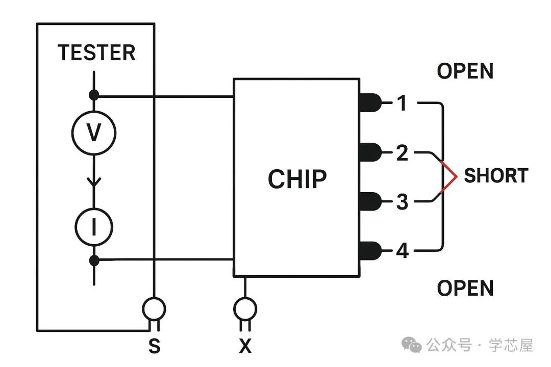 在芯片测试中,Continuity(连通性)测试是一个非常基础但至关重要的测试项,通常被归入Bin 1~Bin 4 或特殊Bin位。它的目的是验证芯片各个引脚或接点之间是否存在开路(open)或短路(short)等硬件层面的问题。 Continuity 测试是什么?Continuity Test(连通性测试)主要是在晶圆级(CP,Chip Probing)和成品级(FT,Final Test)对芯片的 引脚(Pin)、Pad、电源网络等进行通断检查,确认: 是否每个引脚都已正确连接; 是否存在不应该连通的短路; 是否存在焊线失败、Pad损伤、Bonding不良等问题。 测试内容详解: