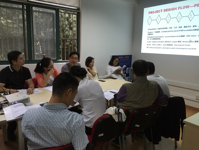 2017年 9月23、24两天的周末,在轻松愉快的气氛中,我们的首期IC专题培训圆满结束,完美谢幕。培训内容异常丰富:从IC设计流程,FAB制造工艺,低良率分析,优化方法及经验,可靠性测试等等一应俱全,本以为干货太多,大家难以消化,没想到功力深厚的王大讲师不仅培训资料准备的异常充分,各种图片,视频,案例、道具所有能够易于理解的方式方法全部搬上讲台,再加上他深入浅出的讲解,瞬间让晦涩难懂的技术变的轻松掌握。课间同学们交流气氛活跃,从各个技术环节展开讨论,工作中遇到的各种技术难题也抛了出来,在交流碰撞中难题不攻自破,好一个别开生面的IC专题培训!同学们纷纷表示这种培训真是太好了,太及时了!受益匪浅,收获巨大,绝对值得参加,话不多说,让我们一起感受一下现场的热烈气氛吧。 首先开讲的是IC设计流程,从培训中可以清楚的知道,IC设计流程中的每个关键时间节点,以及这些节点需要做的最重要的事情,这样对整个项目的把控力度更大,避免出现可能的错误,确保项目成功导入量产。