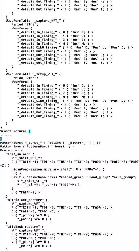 STIL?这是什么鬼?我为什么要谈这玩意儿?相信很多工程师,特别是刚入行或准备入行的兄弟们或多或少听过测试相关的东西。如果你想做DFT工程师的,测试工程师的,而对于设计/验证工程师们如果能了解下这个玩意儿,在和DFT/测试工程师聊技术聊测试pattern的时候就不会一脸懵逼了。好了,言归正传。STIL就是Standard Test Interface Language (标准测试接口语言),IEEE1450.x标准就是专门说的她,语法上很有内涵的赶脚。但很明显,这就是用来描述测试pattern用的语言(Synoposys会采用STIL来描述扫描测试的过程,也就是SPF),就像verilog是用来描述硬件电路的语言一样,会有很多语法规则滴。那我们来好好详谈语法规则吧,你肯定晕菜,我也会晕的......所以放弃吧。 通常STIL格式的pattern文件都是工具生成出来的,自己要像用verilog写设计一样写一个完整的pattern文件,这个......你还是让我回家种地吧。 其实对这门语言的了解不需要很深入,只需要能够读懂,然后能依葫芦画瓢的做点小修改就够用了。好了,下面就跟着我来看看应该怎么快速读懂一个STIL描述的pattern文件。 请看这个例子: 这是一个比较简短的扫描测试STIL格式的pattern文件,从左往右基本显示了主要的几个部分。看到这样一个文件,感觉无数草泥马在眼前飞奔有木有? 我们这时需要思考一个问题,那就是这样一个文件记载的究竟是什么逻辑?既然是测试用的pattern文件,显然它最主要的功能就是描述测试所需要用到的输入输出管脚信号名,以及测试的过程。这个过程就包含如何给激励和给什么激励,以及最后期望得到什么输出和如何判断比较输出。从这个角度出发看待这个文件的话,其实就不难了。 首先看看测试用的输入输出管脚怎么描述的: (1) 这个有点复杂。是定义后面WaveFormTable和vector里给的值的含义。注意这里这个定义是针对双向IO的,”0X”就表示给’0’输入激励同时不做任何输出期望,在vector中就用’0’来完全表示,即有这样的映射定义”0X->0”。0就是输入0,1就是输入1,Z就是高阻输入,N就是没有输入,X表示不期望输出,H表示期望输出高,L表示期望输出低,T表示三态输出。 管脚信号的定义有了,那下面就该是定义这些管脚的输入输出的时序波形了,这个定义模块就是Timing里的WaveFormTable了。这个很重要,基本看懂了这个,就看懂了这个STIL文件的一半。在讲解这个时序波形定义之前,需要普及以一个小概念,不然理解要讲的东西就费劲了。这个概念就是测试波形的周期化。简单说来就是测试过程中,所有信号的激励都是按照时钟的周期一个周期一个周期给的,对输出的期望也是一个周期一个周期进行对比检查的。所以测试pattern在波形上是很有规律性的,而这个规律性就是通过下面WaveFormTable来定义的: 这个扫描测试过程定义中的”load_unload”过程就是定义常说的”shift”过程,因为在”shift”过程中,既有扫描输入(load)又有扫描输出(unload)。另外这里有四个(怎么又是四???别想太多,纯属巧合,如有雷同。。。)”*_capture”过程的定义,这个是为不同的pattern类型准备的。在后面具体的 pattern里会有调用声明要用哪个capture过程。 有没有发现,其实STIL文件里也是一套套一套,套路相当深啊。有点晕了......容本宝宝晕一会儿先。。。。。。 到这里,其实我们已经差不多可以在脑子里对这个扫描测试的波形有概念了,基本可以画出个大概的波形图了。你不信???本宝宝就画给你看: 具体的波形就要依据定义在Pattern模块里的vector赋值给TMS, TDI和 PAD1了。TDO和PAD2是输出,实际输出波形是依赖内部电路逻辑的,可以说不可知,但是我们可以对他们的输出作期望值比较,这个在Pattern模块里也是有给定的。 到此为止,相信你已经也可以比较轻松的看懂这个STIL格式的扫描pattern文件了吧。是不是突然发觉其实也不难嘛,有木有?J 额外说一句,与STIL格式类似的还有WGL格式,在理解波形上,本宝宝可以负责任的说思路是一致的,在语法上也是有很多相通的地方。 至此,如果觉得对你的工作和学习有帮助,欢迎关注E课网,给你带来更多IC专业内容! |