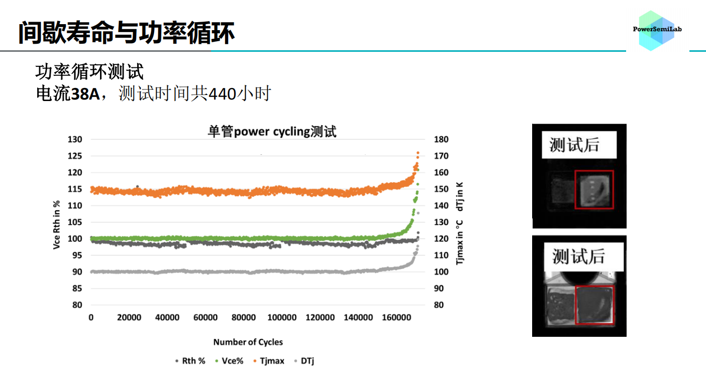 6月15日,2023碳化硅功率器件应用及测试技术大会在无锡·锡山召开,为了响应会议主题,现场我们邀请到了广东能芯半导体科技有限公司总经理姜南博士出席并发表了《SiC产品测试现状及相关标准解读》演讲,下文是演讲实录简化版: 非常感谢大家,我今天分享的内容关于车规标准的问题,因为我们公司做回国创业做车规标准的测试大概4年了,服务了基本上大部分的初创的碳化硅、硅的功率器件厂商,服务很多了车企,车企附属的Tier1厂商,我们对车规的标准也有一定的理解。 目前我常见的车规级功率器件基本上分成三种,单管、塑封半桥和HPD模块。可靠性测试是验证以上功率器件寿命的重要手段。 国内的车规级的标准有非常多种,包括AQG324、AEC-Q101以及其他等等。目前说来,AQG324是国内模块厂商引用最多的,AEC-Q101则是单管厂商所青睐的。但我们需要考虑的是,AEC-Q101标准所制定的时代并不存在成规模的电动车市场,其所验证的单管主要应用在空调、车窗和很多其他的辅助上面。我们在之后的介绍中会做一些重点的甄别。 AQG324标准的适用范围包括了功率模块和实现功率模块功能的单管设计系统,如图所示,这个标准适用两个部分,一是功率模块,例如HPD模块,另外就是类似特斯拉的TPak设计。 我们对比之下可以发现,AEC-Q101很多项目跟可靠性不相关,例如ESD等测试,很多项目就是从集成电路转过来的,所以集成电路的实验室很容易转行做AEC-Q101。而AQG324主体部分都是可靠性,也包括一部分的电热性能参数。 关于温度冲击测试TST,AQG324的2018年版本要求两厢式的温度冲击,但最新的2021年版本就基本上放弃了关于环境测试的需求,单厢体、两厢体、三厢体只要能达到温度的要求都行。AEC-Q101还是一个单厢体温度循环为主。 很多厂商现在采用AQG324的H3TRB测试时要求加载80%的电压,甚至有些客户要求用90%、100%、130%的电压进行老化,来确认碳化硅器件的长期稳定性。 我有很多客户会问为什么AEC-Q101采用间歇寿命测试,而在模块测试要做功率循环? 间歇寿命测试是把单管插在温箱里的老化板上,因为用风扇做冷却,所以器件功耗不能太高,测试标准只要求了结温差和1000个小时的测试时间。在这个1000个小时的间歇寿命测试的样例中,器件没有出现太多的损坏,只有焊料层细微的空洞,说明间歇寿命测试基本上是老化的焊料。 功率循环测试要求给比较大的电流就加热器件,同样的样品,440个小时后器件就损坏了,通过SAM看,键合线全部脱落了。说明功率循环测试和间歇寿命测试有非常大的差异,就是老化因子和失效机理的差别。所以说,如果一个器件厂商通过了AEC-Q101并不能够说明他的器件能够用在大功率的应用上,一位内我们需要考虑电流的老化作用。 所以如果研发人员说我们的大电流单管只用过IOL测试就行,那你和FAE还有客户都可以削他。 但凡有客户找我们说,我们过IOL就可以了,那我觉得FAE会很崩溃,因为在最终的使用过程当中会拉爆产生一定的问题,这是很严重的事故,研发人员,实验室人员要对可靠性的标准要非常深刻的认识。 关于功率循环的要求,AQG-324标准中需要器件厂商自己建立产品的功率循环测试寿命模型,并通过第三方实验室的检验。寿命模型要求是3个可变参数,由于不是一个线性方程,因此每个参数需要大于2个数据来建立联系。 这样算下来,如果只有一台功率循环想做3个参数的寿命模型,可能需要2年多的时间; 如果有6台以上的设备,大概在4个月左右可以得到寿命模型。所以建立寿命模型直接找设备多的第三方实验室是最简单快捷且便宜的方法。 接下来三个比较经典的寿命模型分别代表着铝键合线和焊料,铝键合线和银烧结,以及铜线键合与银烧结的寿命结果。 把以上三个寿命模型放在一个图里进行对比,可以很简单的得到一个道理。那就是如果你的封装工艺做不好就改进封装材料。如果焊料用不好,那就用银烧结;如果铝线打不好,就用铜线。 而碳化硅芯片由于尺寸和物理特性的问题,其寿命基本上是30%左右的同电流效果的IGBT芯片封装的寿命。 下图中的红色横线是最基本的车规要求,我们大部分客户要求是100都结温差5万次循环。蓝色曲线与之交接的这一点表明铝键合线和焊料的搭配刚好可以使IGBT模块达到基本的车规级要求。如果封装采用银烧结或铜线,如图上的绿色曲线和红色曲线的部分,那么其寿命就远远超过车规级的基本要求了。 如果我们使用碳化硅芯片,按照之前的说法,用IGBT器件的寿命乘以0.3的系数,那么碳化硅器件用铝线和焊料就达不到汽车的要求;而银烧结+铝线的组合个刚好通过5万次循环寿命的界限;如果器件封装用铜线+银烧结则超过了车规级的需求。所以我们看到的厂商都倾向于在碳化硅封装上使用铜键合与银烧结搭配的工艺。 纵观整个半导体封装的发展,其所采用的材料工艺应与实际应用的需求相匹配。现在功率器件的封装,尤其是碳化硅器件的封装问题都被碳化硅芯片的高成本与稀缺所掩盖,我相信当芯片的产品和价格不是大问题的时候,功率器件产品的竞争力最终会落在性价比上,而封装成本的控制与相应的封装工艺的优化将成为器件厂商的竞争力之一。 所以说,几百块的产品就只有几百块的效果,效果太多了就会亏本。 关于我这个实验室的平台,之前在佛山已经成立了四年,成立之初是为了响应上汽英飞凌的总监-我之前的硕