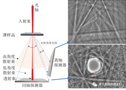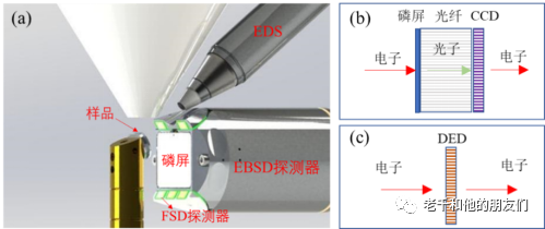 1 引言 显微结构、取向和成分分布是决定结晶材料各种性能的关键因素。在扫描电镜中,扫描电镜图像可以获得显微结构和形貌信息,能谱仪可以获得成分信息,而电子背散射技术(Electron backscatter diffraction,以下简称EBSD)可以获得结构和取向信息。 虽然EBSD技术商品化较晚,在上世纪九十年代初才初露头角,但是它发展迅速。目前,EBSD在材料研究中的应用已十分广泛,其应用范围包括金属、半导体、矿物和陶瓷材料等领域,是研究结晶材料中成分、组织、工艺与性能关系的重要工具。 与X射线衍射(获取宏观的统计信息)和透射电镜(获取极微小区域信息)相比,EBSD可以在微米到毫米范围内提供物相的类型和分布、晶粒大小、形状和缺陷、晶界类型、局部晶体取向及择优取向等大量有价值的信息,弥补了微米尺度结构和取向表征的空缺。 随着场发射电镜的进展和应用领域的增加,EBSD技术也出现了很多新进展。首先,由于纳米材料的发展,对于更高空间分辨率的要求越发迫切,透射菊池衍射(Transmission Kikuchi diffraction,TKD)是一个提高空间分辨率的方向。在其基础上又有新的进展,比如同轴TKD技术。其次,对处理速度的追求,通过探测器的改进可以实现更快的采集速度。除了提升效率,还可以减轻表面污染、荷电和样品漂移。 本文首先简介EBSD表征技术的基础知识,然后再介绍上述EBSD技术领域的重大进展。 2 菊池花样和取向图 EBSD在扫描电镜中使用菊池衍射。它采集的菊池花样由许多菊池带组成。菊池带的形成经历了两个过程:首先,入射电子与晶体相互作用产生非相干的准弹性背散射电子;其次,准弹性背散射电子发生相干衍射,即各个方向的准弹性背散射电子入射到一族平行的晶面,满足布拉格条件就可能产生衍射,投影到探测器的屏幕上即可得到近似平行的菊池带。 在菊池衍射中,信号源犹如在样品内部,将衍射面投影到磷屏上。所以,菊池带可被视为衍射面的投影,菊池带的交点即为晶带轴的投影。相对于入射束方向,衍射方向是背散射的方向,所以被称作电子背散射衍射。 EBSD技术通常借助于商用软件对菊池花样进行自动标定。为了方便计算机识别和处理,仪器采集到的菊池花样需要进行Hough变换。Hough变换可以使软件更准确和方便地识别出菊池带,并算出菊池带的夹角和相对位置。识别出的菊池带与已知结构的数据进行比对,可以判别物相的结构和取向。 为了更好地表示各个区域之间的取向、物相等关系,科研人员通常会使用取向图。取向图建立了二维图像上位置与结构/取向的关系,通过软件对取向图的处理可得到样品的结构、取向、晶界、晶粒和应变分布等信息,也可以导出花样质量图、相分布图、晶界分布图等有价值的定量分析数据。 3 EBSD探测器 图1展示了电镜中大部分EBSD探测器的位置。探测器一般是可伸缩侧置,不工作时缩回,工作时探测器伸出并抵近样品,如图1(a)所示。探测器主要由磷屏和CCD相机(近年出现CMOS相机)构成。其中磷屏将衍射电子转变成光子,光信号通过透镜或者光纤传递给相机,相机再把光信号转成电信号,后续的图像和数据分析系统分析采集到的菊池花样,见图1(b)所示。最新的直接电子探测相机(Direct electron detectors, DED)无磷屏等部件,如图1(c)所示,可以直接探测电子并将其转换成电信号,详见后文所述。 图1 EBSD探测器的位置(a)和信号转换方式(b)传统方式, (c)直接电子探测方式 4 测试条件要求 菊池花样的主要信息来自于准弹性散射电子,而其他背散射电子则构成了花样的背景。所以,EBSD对于样品位置、加速电压、束流等测试条件都提出了较高的要求。 对于块状样品,必须大角度倾斜样品,以保证从表层区域产生大量可以满足布拉格条件的准弹性背散射电子。若倾斜角度较小,这部分准弹性背散射电子较少,菊池带的衬度和花样质量也会随之变差。但是大角度倾斜也会带来聚焦和成像上的困难,以及分辨率的下降和不对称,所以通常选取的倾斜角在60°~70°之间,且以70°最为常用。 为了得到更好的花样质量,通常设置高加速电压以提高探测器磷屏的发光效率。由于衍射电子能量更高、穿透力更强,高加速电压还可以减少表面氧化层或者污染物的影响。但是对于块状样品,高加速电压也意味着信号产生区更大、信号范围更广,从而造成分辨率降低和样品漂移、损伤、荷电等不利影响。综合以上各种因素,加速电压通常选择(10~30) keV,较常使用20 keV。 形成菊池花样的准弹性背散射电子只占背散射电子的很小一部分。为了提高花样质量,必须增加总体背散射电子的产量。通常设置较高的束流(在场发射电镜中一般为纳安级)。通过增加束流可以提高花样质量,减少曝光时间,也使得采集取向图的时间显著减少。但是,束流增加会伴随束斑的增加,对样品的损伤和表面污染也会加剧。曝光时间和采集时间也同样受限于样品,若扫描时间太长,样品移动、损伤和污染都会变得明显并影响取向图的质量。因此,使用CCD相机的探测器经常会用到像素合并(Binning),即将多个像素作为一个像素进行处理,以提高处理速度。 总之,EBSD对测试条件和探测器都提出了严格的要求。随着EBSD应用领域的拓展和表征技术的发展,一方面需要探测器适用更宽泛的测试条件,如低加速电压、低束流等;另一方面,在同样的测试条件下,需要探测器获得的菊池花样更清晰,从而提高背散