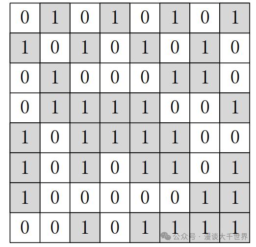 Checkerboard算法,又称为棋盘测试,这也是一种基础测试算法,这种测试适合于检测单元间距越来越小的情况下,相邻两个单元是否能正常赋值,相互之间是否会受到影响,同样可以检测固定故障、固定开路故障和翻转故障。棋盘测试的特征就是相邻两个单元值都不相同,可以用于检测耦合故障。