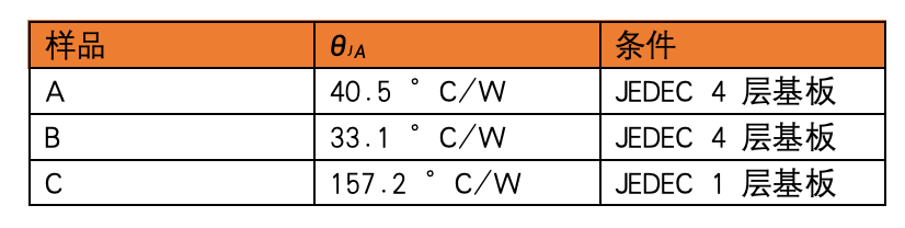 封装半导体器件的热特性与三温测试随着行业趋势向更小、更快和更高功率的设备发展,热管理变得越来越重要。毕竟,如果不对热问题进行仔细权衡,则更高的器件性能可能会付出代价——温度升高和可靠性降低。随着行业趋势向更小、更快和更高功率的设备发展,热管理变得越来越重要。毕竟,如果不对热问题进行仔细权衡,则更高的器件性能可能会付出代价——温度升高和可靠性降低。 一.热阻的概念 1.描述封装器件热性能的常用方法是使用“热阻”,用希腊字母“theta”或θ表示。对于半导体器件,热阻表示在每个瓦特功率(热量)散失到芯片表面时,芯片结点温度上升的稳定状态。其单位为摄氏度/瓦(℃/W)。 2.最常见的例子是 Theta-JA(结点至环境温度)、Theta-JC(结点至外壳温度)和 Theta-JB(结点至电路板温度)。知道了参考温度(即环境温度、外壳温度或电路板温度)、功率和相关的 Theta 温值,就可以计算出结点温度。Theta-JA 通常用于使用安装在环氧树脂玻璃印刷电路板上的元件的自然对流和强制对流空气冷却系统。Theta-JC 适用于直接安装在 PCB 或散热片上的高导电率封装。θ-JB适用于已知封装邻近电路板温度的情况。 3.ψ-JB和ψ-JT实际上是热特性参数,而不是严格的热阻,因为它们描述的是器件内部结点与特定参考点(例如电路板或封装顶部)之间的温升关系,并不直接代表一个明确的两点间热流路径。这种区别对于正确理解和应用这些参数来评估电子设备的热性能非常重要。 二.常用术语 ● TJ (Die Junction Temp, °C):半导体芯片内部结温点(即实际产生热量的地方)的温度。 ● TC (Package Case Temp, °C):封装外壳的温度,通常是在靠近芯片一侧测量的。 ● TB (Board Temp Adjacent to Package, °C):紧邻封装底部的电路板表面的温度。 ● TT (Top of Package Temp at Center, °C):封装顶部中心位置的温度。 ● TA (Ambient Air Temp, °C):环境空气温度,即设备周围空气的温度。 ● θJA (Theta-JA, °C/W):从结点到环境空气的热阻,表示结点温度与环境空气温度之间的温差相对于耗散功率的比例。 ● θJC (Theta-JC, °C/W):从结点到封装外壳的热阻,表示结点温度与封装外壳温度之间的温差相对于耗散功率的比例。 ● θJB (Theta-JB, °C/W):从结点到电路板的热阻,表示结点温度与电路板温度之间的温差相对于耗散功率的比例。 ● ΨJB (Psi-JB, °C/W):结点到基板热特性参数,不同于θJB,它提供了基于特定条件下的实验数据来估算结温的方法。 ● ΨJT (Psi-JT, °C/W):结点至顶(封装顶部)热特性参数,类似于ΨJB,但它是关于封装顶部中心处温度的。 ●P(Power dissipated bydevice,Watts):设备耗散的功率,单位为瓦特(W),指的是器件工作时产生的热量。 三.热阻和热特性参数的使用方法 1.热阻θJA的使用方法 热阻θJA是从器件PN结到周围环境温度的热阻。θJA的符号还 有RthJA、RθJA、Theta-JA 。θJA如图1所示。另外,如式(1)所示,结温度和周围环境温度的温差除以功率损耗(热流量)。 图 1 : θJA的定义 数据表中记载θJA是在 JEDEC 标准 JESD51-2A 中定义的环境中测量的值。用于比较在相同环境下测量的其他产品的散热性能。 在特定的应用下、环境与 JEDEC 不同, θJA的值也不一样。因此,在特定应用下不能使用数据表中记载的θJA、将式(1)变形为 TJ 的式子来推定结温度。 No.1.θJA的使用案例 案例A 在不同的产品之间比较θJA,选择散热性能好(θJA低)的产品来使用。 在这个例子中,产品A和B的基板条件相同,所以可以进行 比较,但是产品C的条件不同,所以不能进行比较。需要得 到相同条件的数据。 案例B 预先通过现有 应用已判断结温度时,在不同的产品间比较θJA,确定结温度相对变化多少度。即使JEDEC下的θJA和现有应 用下的θJA不同,是相对比较,也作为依据处理, 如式(2)所示。 在使用产品A的当前应用中,结温度为155℃。推测变更为产品B的结温度会达到多少。功率损耗计算为2W。 ![]() 案例C TO 封装等通孔部件由于对PCB散热的影响小,所以IC单体 θJA 记载在数据表中。如果应用中不使用散热器,可以使用公式(3)估计结温度。应用下的环境温度,需要考虑包含由于自 身发热和其他零件发热导致环境温度上升部分的状态。 IC单体的θJA为70°C/W、功率损耗为1W、壳体内周围环境 温度的最大值为65°C时,可按以下公式进行推测: 案例D θJA的使用方法项中,虽然写了不能使用数据表中记载 的θJA、将式(1)变形为TJ 的式子来推定结温度。在电路设计 阶段估计结温时,理解根据PCB的不同θJA变化的基础上可以使用。SMD(Surface Mount Device)使用此方法进行粗略估计。 TJ的推定使用式(3), θJA 使用哪个值变得重要了。θJA使用数据表中记载的值,如果比起将来完成的PCB 的θJA,数据表的θJA低的情况下余量为负了,结温度超过绝对最大额定值的可能性变大。 为了防止这种情况,使用热阻比设计的PCB还高的条件下的 θJA。例如,如果设计的PCB为4层,则使用数据表中记载 的1层PCB的θJA的方法。 图2 : HTSOP-J8 封装的θJA 因为1层和4层PCB的铜箔面积有很大的不同θJA也有很大的差别(图3)。如果余量取得过大,结温明显超过时,则可取得铜箔面积可变时的θJA,选择合适余量的θJA(图4)。 图3 : 1 层和 4 层PCB的铜箔面积差异 图4 : 改变铜箔面积时θJA的变化 2.热阻θJC的使用方法 热阻θJC 是从器件PN 结到壳体表面的热阻。θJC的符号还有 RthJC、RθJC、Theta-JC 。数据表中记载θJC测量采用JEDEC标 准JESD51-