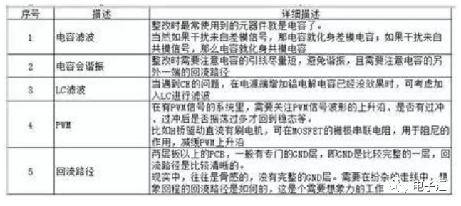 EMC主要是通过测试产品在电磁方面的干扰大小和抗干扰能力的综合评定,是产品在质量安全认证重要的指标之一。很多产品在做产品安全认证时都会遇到产品测试不合格的情况,尤其是在电磁兼容测试(即EMC测试)出错频率更是普遍。当产品一旦测试不合格,那么随之而来的肯定是EMC整改通知书。在EMC整改过程中很多管理人和技术人员并不太明白该从何处入手,今天我们就来分析EMC整改常遇到的问题和一些整改建议。首先我们来从EMC测试项目构成说起,EMC主要包含两大项:EMI(干扰)和EMS(产品抗干扰和敏感度)。当然这两大项中又包括许多小项目,EMI主要测试项:RE(产品辐射,发射)、CE(产品传导干扰)、Harmonic(谐波)、Ficker(闪烁)。EMS主要测试项:ESD(产品静电)、EFT(瞬态脉冲干扰)、DIP(电压跌落)、CS(传导抗干扰)、RS(辐射抗干扰)、Surge(雷击)、PMS(磁场抗扰)。通过这些测试项目我们不难看出EMC测试主要围绕产品的电磁干扰和敏感度两部分,如果一旦产品不符合安全认证标准需要EMC整改的时候我们可以通过降低其材料和零部件进行整改。 一、EMC整改意见: 1、在拿到整改意见书以后,需要提前定位好EMC整改计划。没有定位好计划就去盲目的整改产品就像无头的苍蝇一样到处乱动,这样只会增加整改的成本。 2、定位手段,对于这里小编觉得主要可以分为两点。第一:直觉判断,需要完全依托工程师的直觉和经验来进行判断。第二:比较测试,根据测试仪器所提供的数据来进行分析问题。 二、EMC整改流程: 1、RE超标整改流程: 2、电线电缆超标整改流程: 3、信号电缆整改流程: 4、屏蔽体泄漏整改流程: 三、EMC整改的一些小建议 1、电容的滤波作用 即频率f越大,电容的阻抗Z越小。 当低频时,电容C由于阻抗Z比较大,有用信号可以顺利通过; 当高频时,电容C由于阻抗Z已经很小了,相当于把高频噪声短路到GND上去了。 2、电容滤波在何时会失效 整改中常常会使用电容这种元器件进行滤波,往往有“大电容滤低频,小电容滤高频”的说法。 以常见的表贴式MLCC陶瓷电容为例,进行等效模型如下: 容值10nF,封装0603的X7R陶瓷的模型参数如下: 由于等效模型中既有电容C,也有电感L,组成了二阶系统,就存在不稳定性。对电路回路来说,就是会发生谐振,谐振点在如下频率处: 下图是谐振曲线的示例: 即常说的在谐振点前是电容,谐振点之后就不再是电容了。 3、LC滤波何时使用 如果串联电感L,再并联组成C,就形成了LC滤波: 单独一个电容C是一阶系统,单独一个电感L也是一阶系统,在幅值衰减斜率是-20dB。但LC组成的二阶系统,幅值衰减斜率是-40dB,更靠近理想的“立陡”的截止频率的效果,即滤波效果更好。 4、PWM频率到底是多少 往往提到PWM,比如会说用20kHz PWM驱动电机等。但实际上,这个20kHz仅代表PWM的脉冲周期是50us: 那么所谓的20kHz PWM在频域上的频率点落在哪里呢,如下公式: 对于阶跃信号来说,由于上升时间tr无穷小,则频率f无穷大。当频率高了之后,寄生参数则不能再忽略,会引发很多谐振的问题。 从信号上来看,就是很陡峭的阶跃信号会有过冲和振荡的问题。简单来说就是频率f越大,则噪声所占的频率就会越宽泛,即EMC特性就会越差。 5、如何将原理图和PCB对应起来 由于细分工种的问题,原理图和PCB被割裂开来,由两组人进行分工作业: 例如在原理图上有如下的电路: 其隐含一个问题就是在PCB上其实V1的负极和C1的负极是有一条线(PCB layout工具软件中用的词比较准确,Trace,踪迹/轨迹)。 往往在设计阶段A->B->C是都会关注的。如果EMC出现问题,除了要在原理图上查找电路参数的问题,还需要特别关注C->D,即回流路径。 如果回流路径不顺畅,会造成信号的畸变: 比如在EMC试验时,MCU的ADC采集到的信号被干扰到了,则除了在原理图上分析外,在PCB上讲该信号高亮出来,然后再耐心寻找该信号的回流路径是否有不顺畅的地方: 对着信号线头脑中想象回流路径,有点意识流的感觉。 6、总结 |