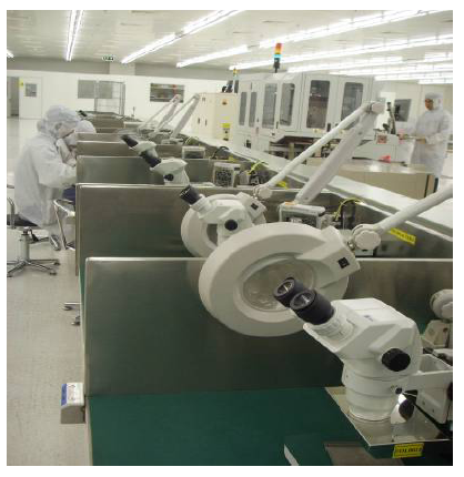 EOL– End of Line后段工艺 EOL– Molding(注塑) EOL– Laser Mark(激光打字) 在产品(Package)的正面或者背面激光刻字。内容有:产品名称,生产日期,生产批次等; EOL– Post Mold Cure(模后固化) 用于Molding后塑封料的固化,保护IC内部结构,消除内部应力。Cure Temp:175+/-5°C;Cure Time:8Hrs EOL– De-flash(去溢料) 目的:De-flash的目的在于去除Molding后在管体周围Lead之间 多余的溢料; 方法:弱酸浸泡,高压水冲洗; EOL– Plating(电镀) 利用金属和化学的方法,在Leadframe的表面 镀上一层镀层,以防止外界环境的影响(潮湿 和热)。并且使元器件在PCB板上容易焊接及 提高导电性。 电镀一般有两种类型: Pb-Free:无铅电镀,采用的是>99.95%的高纯 度的锡(Tin),为目前普遍采用的技术,符合 Rohs的要求; Tin-Lead:铅锡合金。Tin占85%,Lead占 15%,由于不符合Rohs,目前基本被淘汰; EOL– Post Annealing Bake(电镀退火) 目的:让无铅电镀后的产品在高温下烘烤一段时间,目的在于 消除电镀层潜在的晶须生长(Whisker Growth)的问题; 条件:150+/-5C; 2Hrs; EOL– Trim&Form(切筋成型) Trim:将一条片的Lead Frame切割成单独的Unit(IC)的过程; Form:对Trim后的IC产品进行引脚成型,达到工艺需要求的形状, 并放置进Tube或者Tray盘中; EOL– Final Visual Inspection(第四道光检) 在低倍放大镜下,对产品外观进行检查。主要针对EOL工艺可能产生的废品:例如Molding缺陷,电镀缺陷和Trim/Form缺陷等。 |