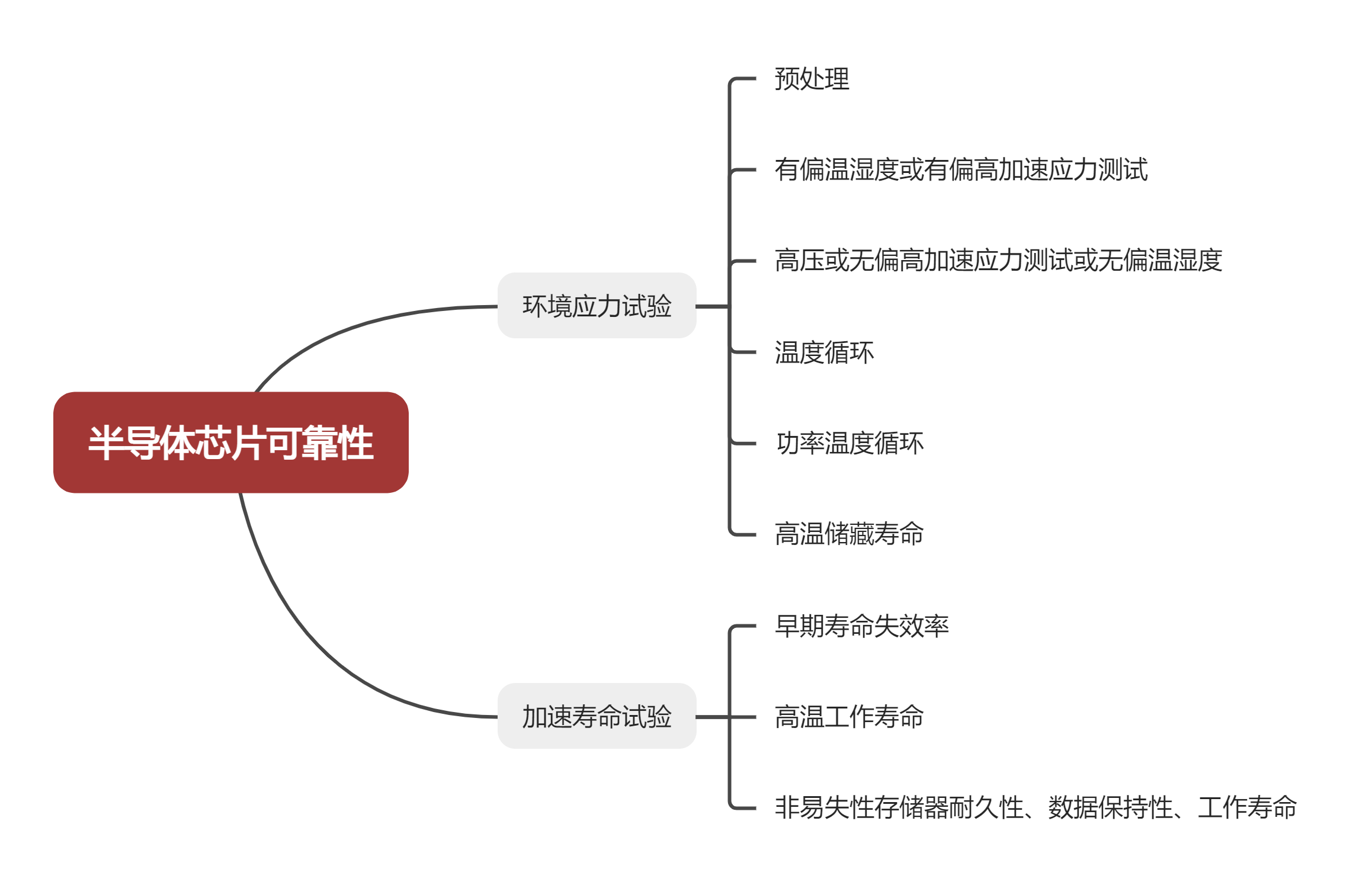 半导体芯片可靠性测试|HAITUO 半导体芯片可靠性试验是通过模拟芯片在实际应用中可能遭遇的极端环境(如高温、低温、湿度、机械冲击等)和长期工作状态,系统性评估其性能稳定性、寿命及失效模式的测试过程。其核心目标是确保芯片在预设寿命内,能够持续稳定地完成预期功能,同时满足行业标准与终端应用场景的严苛要求。 1.环境应力试验 预处理 · 目的:通过模拟实际使用环境中的各种应力和条件,提前识别和排除潜在缺陷,确保芯片在后续流程中的可靠性。 · 测试方法:JEDEC JESD22-A113 有偏温湿度或有偏高加速应力测试 · 目的:是通过施加电偏置+环境应力的复合条件,加速失效机制,从而识别设计、材料或工艺中的薄弱环节。 · 测试方法:JEDEC JESD22-A101或A110 高压或无偏高加速应力测试或无偏温湿度 · 目的:用于评估芯片在无电偏置条件下对极端环境或机械应力的耐受能力,重点关注材料稳定性、封装完整性以及工艺缺陷的暴露。 · 测试方法:JEDEC JESD22-A101、A102或A118 温度循环 目的:通过模拟芯片在实际使用、存储或运输过程中经历的温度剧烈变化,加速暴露因热机械应力导致的材料疲劳、界面失效或结构缺陷。 失效模式:如热疲劳、电迁移、连接点失效等 测试方法:JEDEC JESD22-A104 功率温度循环 · 目的:验证芯片在电热耦合应力下的长期可靠性,尤其关注功率器件、互连结构及封装材料的耐久性。 · 测试方法:JEDEC JESD22-A105 高温储藏寿命 · 目的:通过将芯片置于高温环境中储存,达到评估芯片在高温环境下的稳定性、加速芯片老化过程、筛选出潜在的质量问题、为产品设计和应用提供数据支持的目的。 · 测试方法:JEDEC JESD22-A103 2.加速寿命试验 早期寿命失效率 · 目的:通过加速应力条件筛选出制造缺陷或潜在工艺瑕疵引发的早期失效产品,确保芯片在交付客户后的失效率符合预期。 · 测试方法:AEC-Q100 高温工作寿命 · 目的:通过模拟高温环境,评估高温工况下的性能稳定性以及加速老化进程以预测实际寿命。 · 测试方法:JEDEC JESD22-A108 非易失性存储器耐久性、数据保持性、工作寿命 · 目的:确保存储单元在反复擦写、长期存储及实际工作条件下的数据完整性和功能稳定性。 · 测试方法:AEC-Q100 |