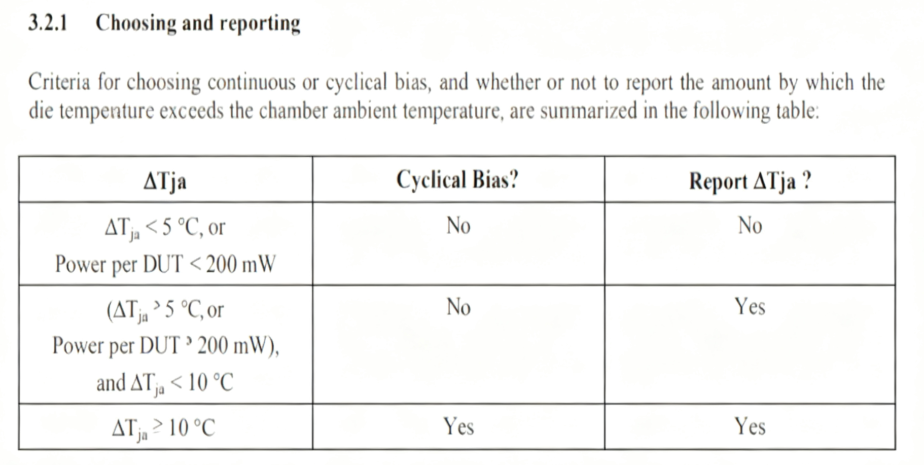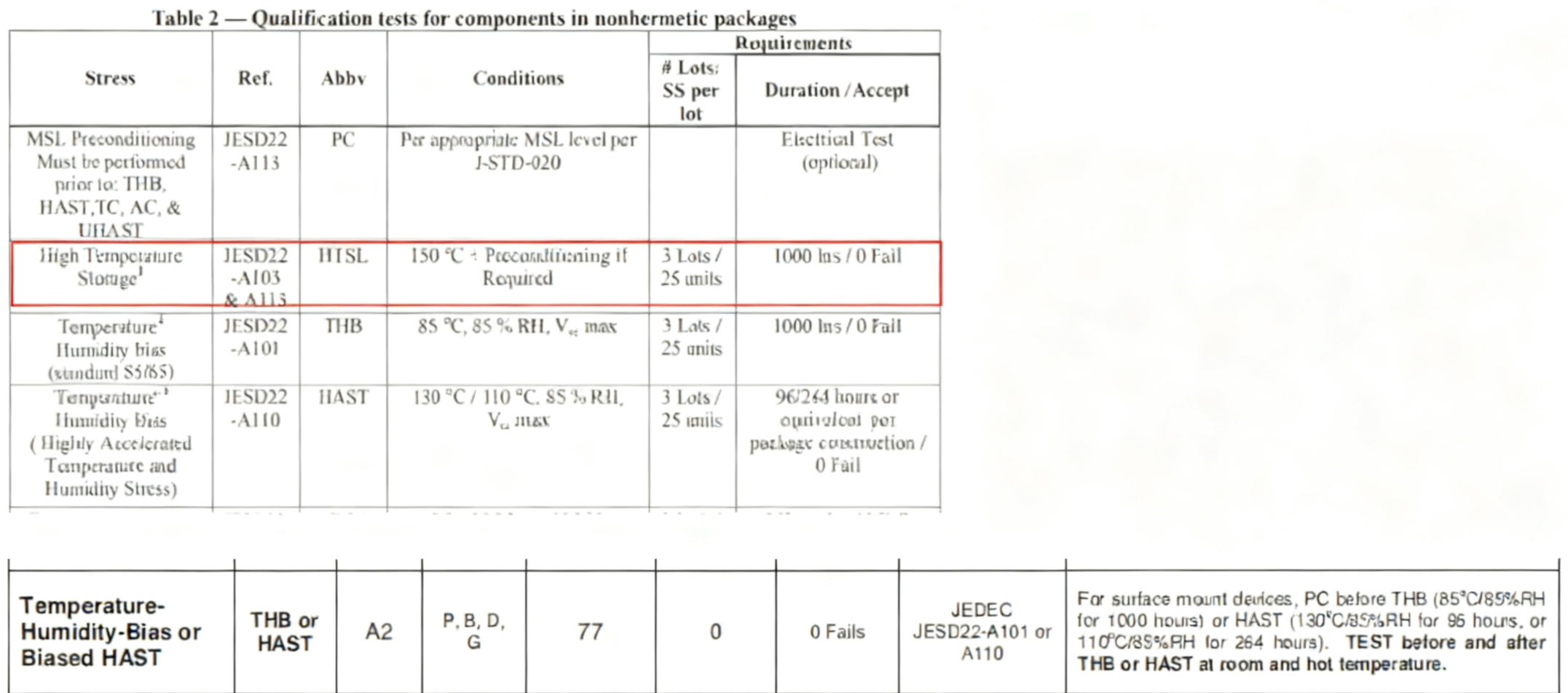 1. 前言 本次介绍上篇《芯片测试学习笔记》文章提到的可靠性测试项其中两项:HTOL和HAST测试。 2. HTOL(High Temperature Operation Life) HTOL测试是芯片电路可靠性的一项关键性的基础测试,采用应力加速的方式模拟芯片的长期运行,以此评估芯片寿命和长期上电运行的可靠性。 2.1 应力加速方式 电压拉偏 一般按1.1x电压设置,但可以设置更高的电压,说明如下: 推荐设置为“Maximum Operating Voltage”电压,一般超出正常电压5%~10%左右,该电压在Datasheet中有详细规定。 如果该电压下芯片结温达不到要求,则需要提高电压以满足老化加速条件,但是不能超过“Absolute Maximum Rated Voltage”,否则会对器件产生破坏性损伤。这两个电压参数芯片Datasheet一般都会给出。 温度拉偏 最低结温Tj要求125°℃,且结温不得高于150℃。 然而,对于没有集成内部温度传感器的IC,结温无法直接测量,需要用公式推算: Tj = Tc + θjc x P Tj:结温,Junction Temperature。 Tc:壳温,Case Temperature,封装外壳温度,可通过外部温度计测量 θjc:PN结-外壳的热阻,表征材料的导热性,芯片Datasheet会给出 P:芯片总功耗 2.2 老化寿命估算 2.3 行业标准 JESD22A108D Temperature, Bias, and Operating Life JESD47I Stress-Test-Driven Qualification of Integrated Circuits AEC - Q100 - REV-HFAILURE MECHANISM BASED STRESS TEST QUALIFICATION FOR INTEGRATED CIRCUITS 2.4 测试设备 2.5 样本数量 参考《JESD47I》标准,样本量按照LTPD抽样规则,要求如下: 样本量为3Lots/77units,即三个批次(批次间隔时间15天),每批次77个样本。 实际测试中,一般会用TT芯片做第一、第三批次测试,第二批用corner芯片。 2.6 Pattern/测试程序 芯片需要一直保持上电运行测试程序,所以对测试程序有一定要求。 通常是机台+Pattern的方式,租借第三方公司机台,自己开发Pattern。 还有一种简易方案:芯片直接运行HTOL测试程序,通过LED监控运行状态。 向量覆盖率要求: 1. logic电路:Scan ATPG的stuck-at fault coverage大于70%; 2. Memory BIST:覆盖所有memory; 3. CPU/DSP:Scan ATPG的stuck-at fault coverage大于70%; 4. 模拟电路:PLL/ADC/DAC/SERDES等关键IP。 2.7 测试过程 1. 初始测试(Initial Test)测试前对芯片进行全面的电气参数测试,记录初始状态作为基准; 2. 高温工作阶段将芯片放入高温箱,施加工作电压并运行测试向量; 3. 中间 / 终点测试(Interim/Final Test)测试结束后,将芯片恢复至常温,ATE复测与初始状态对比: · 若参数变化在允许范围内(波动≤10%),则通过测试; · 若出现功能失效、参数漂移超标(如漏电增大、时序异常),则判定为失效,需分析原因(如工艺缺陷、设计漏洞)。 2.8 经验笔记 1. 通常168h中途就会进行读点(168h是浴盆曲线的挂点),不需要等到1000h全部做完; 2. HTOL测试中途是可以停下来的,只要累计达1000h即可; 3. HTOL板子都是Socket,不能是贴片,同时要给芯片编号,因为还需要在ATE读点; 4. 需要多预留几个Socket和样片,高温老化环境可能会影响Socket可靠性; 5. 不同封装的芯片需要重做HTOL,报告不能复用; 6. 热阻是封装测试厂可提供的参数。 3. HAST测试(高加速应力测试) HAST高加速老化测试是主要用于评估在温湿环境下产品或者材料的可靠性,是通过在高度受控的压力容器内设定和创建温度、湿度、压力的各种条件来完成的。 这些条件加速了水分穿透外部保护性塑料包装并将这些应力条件施加到材料本体或者产品内部。 相对于传统的高温高湿测试,HAST增加了容器内的压力,使得可以实现超过100℃条件下的温湿度控制,能够加速温湿度的老化效果(如迁移腐蚀,绝缘劣化,材料老化等),大大缩短可靠性评估的测试周期,节约时间成本。 3.1 应力加速方式 · 电压拉偏 uHAST测试不带电压拉偏,不需要关注。 bHAST需要带电压拉偏,遵循以下原则: 1. 所有电源上电,电压:最大推荐操作范围电压(Maximum Recommended Operating Conditions); 2. 芯片功耗最小(数字部分不翻转、输入晶振短接、其他降功耗方法); 3. 输入管脚在输入电压允许范围内拉高。 温度拉偏 测试过程中,监控芯片壳温、功耗数据推算芯片结温,要保证结温不能过高,并在测试过程中定期记录。 如果壳温与环温差值或者功耗满足下表三种关系时,特别是当壳温与环温差值超过 10℃时,需考虑周期性的电压拉偏策略。 3.2 测试设备 3.3 样本数量 3.4 测试过程 与HTOL有个明显区别,HAST是不需要运行测试程序。 |
