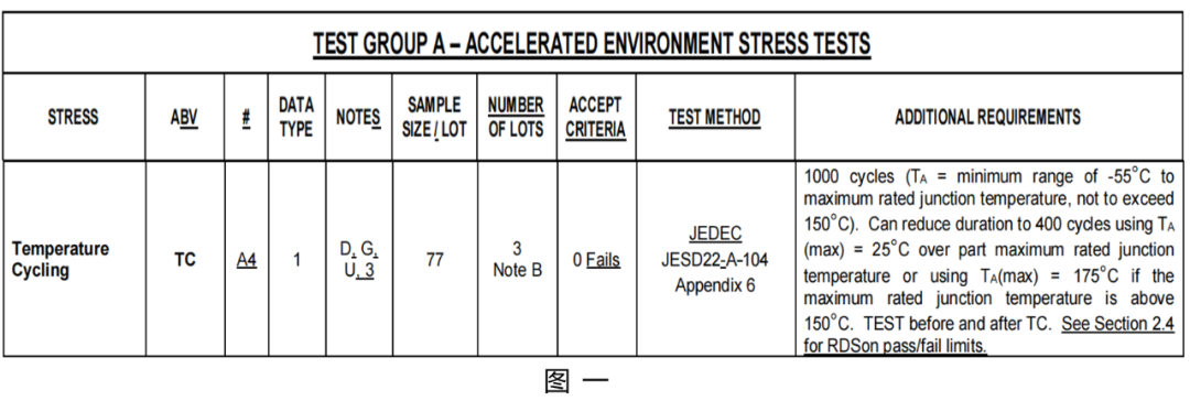 AEC-Q101 标准之TC解读TC( Temperature Cycling )高温循环测试意义在于证实极高温度,极低温度和高温与低温交替作用时,机械应力对于器件焊接性能的作用,标准AEC-Q101-E 中 TC测试条件见图一,参考依据的文件是JESD22 A-104 。其中NOTE D明确了 TC 是破坏性实验,执行 TC 后的材料不可以再用做其他性能确认或使用。 最新JESD22A-104F版本中,试验过程中,对装置所经受的极限高温、极限低温选择、高温低温保温时间和升降温速率等都提出了明确的要求,其TC温度曲线如图二所示。 实验高温低温的选择: 根据设备所能经受的极限高低温度来选择不同的试验条件,如果我司TVS设备能够满足-55°低温、+150°高温的应用环境,那么在TC试验中就选择图三条件H。 高低温保温时间的选择: 高温状态下低温状态下保温时间愈长,设备所受应力愈大,JESD22 A-104标准如图四所示对于焊接疲劳和蠕变测试需进行验证的封装元件来说,保温模式建议采用2,3,4,一般元器件选择方式1。 单位时间内温循次数的选择: 如图五,典型的温循次数要求一个小时内完成1~3个循环,循环次数越多越易失效,其典型失效模式是疲劳和分层。 单位时间内温循次数的选择: 如图六,针对执行-55°~+150°温循的典型温循次数推荐一个小时内完成2个循环,高低温保温模式可以选择1分钟或者5分钟。 实验高低温变化速率的选择: 升降温速率选取是建立在适当焊点疲劳测试与循环测试效率权衡基础上。•互连焊点疲劳目的试验时,图七所示为典型温变速率需要10~14°/min。 总结如下,TC(Temperature Cycling )高低温循环测试其共有五个维度的要求: |