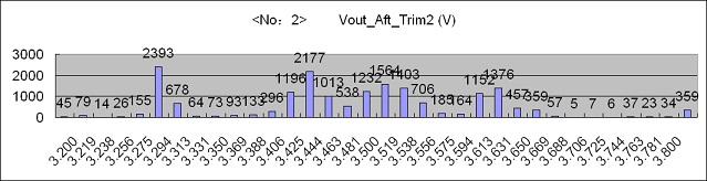 Conclusion: Yield after re-trim: 52% (limitation: 3.41V~3.59V), low yield because the fine regulation of UU002 can’t re-trimming after the first trimming and the precision of coarse regulation is low ( about 5%) .