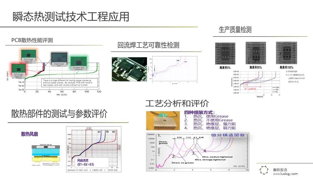 以下文章来源于今昔CAE随笔 ,作者今昔CAE随笔半导体瞬态热测试技术的 前世今生及未来 应用半导体的 IV 曲线去测量半导体结温,是一项芯片结温测量技术,从半导体物理学的角度,我们知道在 PN 结上施加恒流源后,结电压随着温度的变化大约是 -1 mV/°C~-2 mV/°C。描绘二极管电压随着温度的变化特征可以使用户测量二极管电压,并很容易地确定芯片温度。通过测量电压的去测量结温的方法也叫ETM(Electrical Test Method),在测量温度之前,首先要对表征该半导体电压和温度的关系线的斜率——即的 ETM 的 K 系数做准确标定。大电流的 K 系数标定算法,目前还是一个业内难题(由于大电流自带一部功率,会影响最终的温度),小电流的 K 系数,由于小电流功率较小(几百分之一,可以作为测量误差),因而被广泛使用。为了测试结果的可比性,1995 年,JEDEC 出具了 JESD 51-1 半导体热测试标准,规定了功率,测试条件,测量设备的精度要求等测试要素,同时也提供了两种测试方法(动态法和静态法),并指出这两种测试方法的主要适用对象及工况。 后续车规级可靠性测试标准AQG324,也是主要参考了JESD 51-1的标准。 基于JESD 51-1的标准,对结温的测量,其误差是比较大的,主要有几个因素: 1、对于半导体电压的测量,有一定的测量底噪,既是电压的测量精度。半导体导通压降一般是 V 级别,目前最高等级的电压表是 0.1级(51-1的标准要求是 0.5 级),也就是千分之一的误差,换算成电压就是 mV 级别,而绝大部分简易的电压测量装置,底噪普遍在 3-5mV,换算成温度误差大概是 2-3 度; 2、半导体工作时,引起半导体结温上升的是工作电流(大电流),这时如果需要测量结温,需要把半导体的大电流切断,换成已知 K 系数的小电流去测量压降,而这种切换过程中,大电流不能瞬间关断,小电流测量出的电压值,在切换完成的瞬间(51-1标准提到的切换时间是几十us,实际上各种设备开关速度大概是从几百 us 到 ms 不等),基本上也是噪声,无法表征实际的温度信息。 为了能准确测量芯片的结温,及响应工业上对芯片的散热结构做定量分析的需求,瞬态热测试技术由此而生,并在 2010 年诞生了目前最先进的热测试标准——JESD 51-14。 瞬态热测试技术是用高频信号对半导体的结电压做长时间的连续采样,从而提高温度的测量精度,同时通过结电压的变化曲线去分析电子器件的一维散热路径。第一个提出电子瞬态方法测量元件结温是70年代的Blackburn等人。之后 Siegel 提出了一种从电子瞬态测量数据中提取2个或3个主要热流时间常数的方法。再往后,Sofia提出了一种使用电子瞬态测试方法从塑料封装中区分陶瓷封装的方法。1988年,Szbkely 提出了一种通过反卷积识别网络的详细方法,这种方法提供了精确的数学方法以获得完整的各部分时间常数,动态热阻和热容。1997 年匈牙利 MicRED 公司(后来 MicRED 公司被英国Flomerics 公司收购,而 Flomerics 公司又被 Mentor 收购,成立结构分析部)开发出世界上第一款瞬态热测试设备 T3Ster。尽管T3Ster 在技术上远远领先于行业中其他竞争对手,但是一开始这个设备的市场接受情况并不理想,到了 2008 年,全球范围内基本上也只有每年 1M 美金左右的销售额,也就是每年只有个位数的设备销售量。 2009 年,罗亚非博士加盟 Mentor 日本公司,潜心研究半导体瞬态热测试的应用技术。通过工程应用的大量探索,罗亚非博士创新型的提出了三维热阻模型,建立测试数据和工程应用之间的直接联系,广泛应用于日本客户的产品设计及结温预估,解决电子散热领域的技术问题。2010 年,日本公司异军突起,在 MicRED 的全球销售中,占到了 70%以上的权重,而 T3Ster 在日本的商业成功首先是辐射到了中国,2011 年,T3Ster 在中国市场销售,市场容量也呈几何级数增长(现在已经超过了日本),与此同时,全球的 MicRED 业务也逐年的显著增长。2014 年,Mentor推出基于 T3Ster技术开发的工业化产品PWT 1500A,由于技术领先,集成性和易用性等因素,迅速被认定为功率循环的行业标准。 瞬态热测试技术有几个技术上的难点: 1、为了提高电压测量的精度,需要实现 1MHz 的高频采样,这样可以把电压的测量精度提升到 16uV,也就是对于结温的测量精度是 0.01 度; 2、为了完整分析电子路径的散热结构,需要对半导体的结温做长时间连续的采样。而温度相对于时间是对数关系,要想得到准确可重复的测试结果,需要在对数时间轴上采集大致相等的数据量,这就要求采样设备具备连续变频的能力; 3、大电流向小电流切换时,在前面一段时间内的测量数据是测量噪声,这一段时间我们叫开关速度(和设备及半导体器件有关),很显然,这个速度越快越好,目前业内的最好水平是把这个时间缩短到 50us 左右。要想达到这个水平,必须要开发泄流电路; 4、为了能得到准确的加热功率,业内通常用降温法,既是现有恒定的电流加热半导体,直至达到温度饱和(此时的加热功率等于散热功率),而温度是否饱和,饱和的位置是否一致,会直接影响到最终测试结果的精度。 还有数据同步技术,高精度K系数测试技术,瞬态数据处理算法等等,也都是瞬态热测试中所涉及到的关键技术。Mentor 在高速采样,连续变频,电子开关等技术上,一直长时间处于世界领先的地位,直到鲁欧智造的出现。 罗亚非博士离开 Mentor 后,选择了自主创业,在中国成立了鲁欧智造(山东)高端装备科技有限公司,自主研发国产的瞬态热测