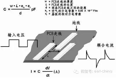 超强PCB布线设计经验谈附原理图(三) 布线需要考虑的问题很多,但是最基本的的还是要做到周密,谨慎。 寄生元件危害最大的情况 印刷电路板布线产生的主要寄生元件包括:寄生电阻、寄生电容和寄生电感。例如:PCB的寄生电阻由元件之间的走线形成;电路板上的走线、焊盘和平行走线会产生寄生电容;寄生电感的产生途径包括环路电感、互感和过孔。当将电路原理图转化为实际的PCB时,所有这些寄生元件都可能对电路的有效性产生干扰。本文将对最棘手的电路板寄生元件类型 — 寄生电容进行量化,并提供一个可清楚看到寄生电容对电路性能影响的示例。 图1 在PCB上布两条靠近的走线,很容易产生寄生电容。由于这种寄生电容的存在,在一条走线上的快速电压变化会在另一条走线上产生电流信号。 图2 用三个8位数字电位器和三个放大器提供65536个差分输出电压,组成一个16位D/A转换器。如果系统中的VDD为5V,那么此D/A转换器的分辨率或LSB大小为76.3mV。 图3 这是对图2所示电路的第一次布线尝试。此配置在模拟线路上产生不规律的噪声,这是因为在特定数字走线上的数据输入码随着数字电位器的编程需求而改变。 寄生电容的危害 大多数寄生电容都是靠近放置两条平行走线引起的。可以采用图1所示的公式来计算这种电容值。 在混合信号电路中,如果敏感的高阻抗模拟走线与数字走线距离较近,这种电容会产生问题。例如,图2中的电路就很可能存在这种问题。 为讲解图2所示电路的工作原理,采用三个8位数字电位器和三个CMOS运算放大器组成一个16位D/A转换器。在此图的左侧,在VDD和地之间跨接了两 个数字电位器(U3a和U3b),其抽头输出连接到两个运放(U4a和U4b)的正相输入端。数字电位器U2和U3通过与单片机(U1)之间的SPI接口 编程。在此配置中,每个数字电位器配置为8位乘法型D/A转换器。如果VDD为5V,那么这些D/A转换器的LSB大小等于19.61mV。 这两个数字电位器的抽头都分别连接到两个配置了缓冲器的运放的正相输入端。在此配置中,运放的输入端是高阻抗的,将数字电位器与电路其它部分隔离开了。这两个放大器配置为其输出摆幅限制不会超出第二级放大器的输入范围。 图 4 在此示波器照片中,最上面的波形取自JP1(到数字电位器的数字码),第二个波形取自JP5(相邻模拟走线上的噪声),最下面的波形取自TP10(16位D/A转换器输出端的噪声)。 图 5 采用这种新的布线,将模拟线路和数字线路隔离开了。增大走线之间的距离,基本消除了在前面布线中造成干扰的数字噪声。 图 6 图中示出了采用新布线的16位D/A转换器的单个码转换结果,对数字电位器编程的数字信号没有造成数字噪声。 为使此电路具有16位D/A转换器的性能,采用第三个数字电位器(U2a)跨接在两个运放(U4a和U4b)的输出端之间。U3a和U3b的编程设定经 数字电位器后的电压值。如果VDD为5V,可以将U3a和U3b的输出编程为相差19.61mV。此电压大小经第三个8位数字电位器R3,则自左至右整个 电路的LSB大小为76.3mV。此电路获得最优性能所需的严格器件规格如表1所示。 此电路有两种基本工作模式。第一种模式可用于获 得可编程、可调节的直流差分电压。在此模式中,电路的数字部分只是偶尔使用,在正常工作时不使用。第二种模式是可以将此电路用作任意波形发生器。在此模式中,电路的数字部分是电路运行的必需部分。此模式中可能发生电容耦合的危险。 图 2 所示电路的第一次布线如图3所示。此电路是在实验室中快速设计出的,没有注意细节。在检查布线时,发现将数字走线布在了高阻抗模拟线路的旁边。需要强调的是,第一次就应该正确布线,本文的目的是为了讲解如何识别问题及如何对布线做重大改进。 看一下此布线中不同的走线,可以明显看到哪里可能存在问题。图中的模拟走线从U3a的抽头连接到U4a放大器的高阻抗输入端。图中的数字走线传送对数字电位器设置进行编程的数字码。 在测试板上经过测量,发现数字走线中的数字信号耦合到了敏感的模拟走线中,参见图4。 系统中对数字电位器编程的数字信号沿着走线逐渐传输到输出直流电压的模拟线路。此噪声通过电路的模拟部分一直传播到第三个数字电位器(U5a)。第三个数字电位器在两个输出状态之间翻转。解决这个问题的方法主要是分隔开走线,图5示出了改进的布线方案。 改变布线的结果如图6所示。将模拟和数字走线仔细分开后,电路成为非常“干净”的16位D/A转换器。图中的波形是第三个数字电位器的单码转换结果76.29mV。