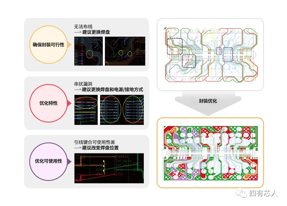半导体封装设计工艺 ▲图1:半导体封装设计流程的各个方面(ⓒ HANOL出版社) 图1显示了半导体封装设计工艺的各项工作内容。首先,封装设计需要芯片设计部门提供关键信息,包括芯片焊盘(Chip Pad)坐标、芯片布局和封装互连数据。然后,团队将根据封装材料设计由基板(Substrate)和引线框架(Leadframe)组成的半导体封装结构。这一过程涉及应用设计规则,需要充分考虑封装的批量生产、制造过程、工艺条件和所需设备等。 封装可行性审查应在封装开发初期进行,审查结果需要提交给芯片和产品设计人员做进一步反馈。完成可行性研究后,须向封装制造商下订单,并附上封装、工具、引线框架和基板的设计图纸。交付用于封装的晶圆时,除了引线或焊接凸点(Solder Bump)连接的设计图纸外,还需要准备好工具、引线框架材料和基板。引线或焊接凸点连接的设计图纸必须提前分享给封装工艺及制造工程师。 收到这些设计图纸后,封装设计工程师将开展可行性测试。具体来讲,使封装锡球(Solder Ball)的布局和芯片的焊盘序列关联在一起,以确定这种布线方式是否可行。通过前期的可行性研究,工程师将提出有关封装锡球排列、封装尺寸和规格的建议,以改进半导体芯片和器件的特性与工艺。 优化封装特性 ▲图2:封装设计优化流程(ⓒ HANOL出版社) 封装设计优化流程如图2所示。在封装可行性审查的初始阶段,提出最佳焊盘位置,再确保接线的可行性。为了优化这些工艺特性,需要对结构特性、热特性和电气特性进行分析。 如今,为了满足半导体行业针对传输速度、集成度和性能日益增长的需求,这些特性有必要进行全面提升。就电气特性而言,封装时增加锡球,可以增加链接印刷电路板(PCB)上引脚(Pin)的数量,从而添加更多布线。这样一来,基板、引线框架和印刷电路板的设计将变得更加精细和复杂。这就会导致这些设备的制造会受制于封装公司和基板等组件制造商的工艺能力。因此,在半导体封装设计中,为了避免质量问题,需要制定与材料、工艺和设备相关的设计规则,定期对这些规则进行审查,并分享给芯片设计人员及基板和封装制造商。 基于共享的设计规则,封装工艺工程师和基板制造工艺工程师可合力缩小封装锡球的尺寸和间距,以及信号布线的宽度和间隔。同样,设计规则中还会明确规范从工艺性能到电气规格在内的一系列细节。此外,设计规则中还会详细说明管理封装和基板容差1的方法,以及核查封装工艺性能的方法。 更具体地说,设计规则还可以用来满足严格的电气规格容差管理。为了满足电气规格,团队需要根据预先验证的设计数据绘制图纸,来规划并依次制定三个方面的容差:每条高速信号线;管理每条信号线阻抗2一致性的电介质3厚度;以及能够实现最佳低功耗设计的过孔尺寸4。另一方面,为了提高封装效率和批量生产能力,团队在设计诸如基板等器件时会考虑使用标记模式,以注明符合标准的器件,并将其作为设计规则进行管理。 1 容差(Tolerance):性能差异导致的空间或数字上的误差范围。 2 阻抗(Impedance):衡量电路阻碍电流通过能力程度的指标。 3 电介质(Dielectric):通过施加电场可以被极化的一种电绝缘体。 4 过孔尺寸(Via Size):印刷电路板中不同层之间用于电气连接的孔的尺寸。 分析封装结构针对半导体封装结构,可通过计算机模拟的方式去分析。通常情况下,计算机模拟分析过程会将推导出的一般方程应用于特定条件中,以便深入了解特定情况。标准的计算机模拟分析过程包括四个步骤。首先,将支配某种自然现象的要素以及这些要素之间的关系归纳为数学表达式,如控制方程5,然后对分析对象进行建模,以便进行计算机模拟。接下来,将控制方程应用到模型中,进行数学计算,最后将计算结果应用于现象进行分析。计算机模拟分析方法主要分为:有限差分法(Finite Difference Method)、有限元法(Finite Element Method, FEM)和有限体积法(Finite Volume Method)。其中,有限元法被广泛应用于分析半导体结构。从工程角度而言,有限元法指将无限数量的点和自由度6转化为有限数量的点和自由度的能力,这些点随后被纳入线性方程组进行计算。 5 控制方程(Governing Equation):构成计算机代码基础的数学公式。在计算建模场景中,控制方程决定由代码提前预设的隐藏的流体行为。 6 自由度(Degrees of Freedom):对某一统计量进行最终计算时,可以自由变化的数值的个数。 有限元法由有限数量的被称为元素的构建模块组成。每个元素都包含有限数量的点和一个控制方程,而数值则通过求解方程获得。为了深化对结构分析的了解,我们有必要知道结构分析所需材料的三个关键属性:热膨胀系数(CTE)、泊松比(Poisson’s Ratio)和应力(Stress)。 热膨胀系数是用来描述材料因温度波动而发生长度变化的一项指标。一般来说,温度升高时材料膨胀,温度下降时材料收缩。因此,热膨胀系数被定义为单位温度上升时材料长度的增幅量。泊松比指材料在垂直于特定载荷方向上的膨胀或收缩,考虑物体所受的推拉作用可有助于我们更好地了解泊松比的概念。如果我们从两端纵向拉动一个物体并对其施加拉力,那么物体会沿着长度方向伸展,沿着宽度方向收缩。但是,如果我们从两端纵向推挤一个物体并对其施加压缩力,那么物体会沿着这个力的方向收缩,沿着宽度方向伸展。最后,应力指物体在受到外部作用