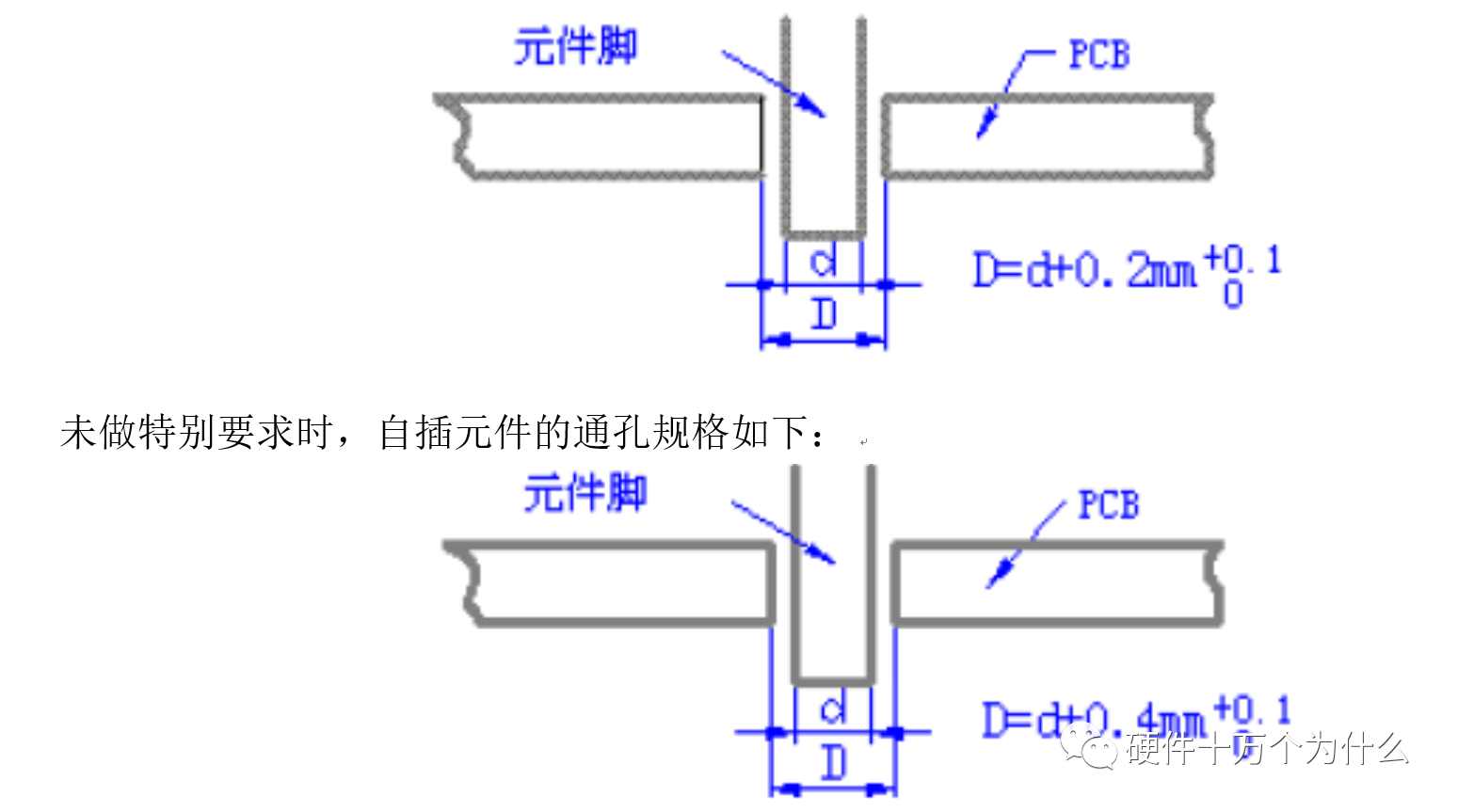 4.4.4.4未做特别要求时,通孔安装元件焊盘的规格如下: