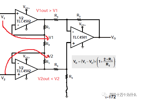 1、运放十坑之一——轨到轨高速(>50MHz)轨到轨运算放大器支持以更低的电源电压、更接近供电轨的摆幅和更宽的动态范围工作。”看到没有: “以更低的电源电压、更接近供电轨的摆幅和更宽的动态范围工作。” “更接近供电轨的摆幅” “更接近” “接近” 。。。 看一个轨到轨运放的手册: 输出电压的确是到不了电源的5V,why? 运放的输出级可以简化为下面这种的结构形式: 由于MOS管有导通电阻,当流过电流时,导致了电压降,因此,当负载越大时,导通压降越大,输出电压越不能达到轨。 所以说,轨到轨运放不是完全的可以使输出到达电源值,要使用的时候,还需要看负载和温度(影响导通电阻阻值)的关系来决定输出能达到多大电压。 2、运放十坑之二——不可忽略的输入偏置电流 设计了一个分压电路,理论上输入1V,输出2V,可是一测,总是多了近6,7百个mV。这要是进12位3V量程ADC,可是要吃掉600多个码。 原来运放正向输入端和反向输入端由于TVS漏电流和管子输入偏置电流,导致了两个输入端存在输入偏置电流(而且由于没有任何一个器件和另外一个器件一模一样,这两者输入偏置电流还不尽相同);这两个偏置电流会与外部电阻一起形成偏置电压后,输出到后端,形成误差。如果你不巧选择了一个基于BJT设计的运放,它具有较大的输入偏置电流,就会造成很大的后级误差。如下图这种运放,真是“岂止于大,简直是莽”。 下面假设,两个输入端的输入偏置电流相同。 对于,正向输入端来说,Ib+带来偏置电压几乎等于0,而对于反向输入端来说,Ib-带来的偏置电压等于350mV(计算时,假设Vout接地,相当于R1//R2)。因此,需要的是在正向输入端增加一个电阻,来补偿反向输入端带来的误差。 正如前文所述,正反相输入偏置电流不尽相同,补偿只能减小失调电压,而正反相输入偏置电流差也称为失调电流。在进行高精度或小信号采样时,可以选用低失调电流运放,因为加入补偿电阻,也代入了一个新的噪声源,要慎重加入。 偏置电流是运放的主要误差之一,在之后的坑中,还会介绍一些影响后级的误差源。 3、运放十坑之三——快速下降的PSRR 当我是个菜鸟工程师的时候,做运放设计从来不考虑PSRR,当听说过PSRR之后,每次选运放都会在成本控制基础上选择一个有较高PSRR的运放。 比如这款运放PSRR达到了160dB: 根据计算公式: 即使电源电压在4.5V-5.5V区间内发生变化,电源对运放输出的影响只有10nV。 很可惜,这个指标是指电源电压的直流变化,而不包括电源电压交流的变化(如纹波),在交流情况下,这个指标会发生非常大的恶化。Spec.里面提到的只是直流变化,交流变化在后面图示里面,一般情况下,非资深工程师对待图示都是滑滑地翻过去。 如果运放电路使用了开关电源,又没有把去耦、滤波做得很好的话,后级输入精度会受到极大的影响。来看,同一款运放的交流PSRR。 对于500kHz开关频率的纹波,PSRR+恶化到只有50dB,假设纹波大小为100mV,那么对于后级的影响恶化会达到0.3mV。对于很多小信号采集的应用来说,这个误差是不可接受的。因此,有些应用场景甚至会在运放电源入口做一个低通滤波(请注意电阻功耗和电阻热噪声)。 4、运放十坑之四——乱加的补偿电容 以前有个“老工程师”对我说,反馈电路加个电容,电路就不会震荡。一看到“震荡”这么高大上的词语,我当场就懵逼了,以后所有的电路都并一个小电容,这样才professional。 直到一天,我要放大一个100kHz(运气很好,频率还没有太高,不然电压反馈运放都没法玩)的信号,也是按照经验并上一个电容,然后。。。信号再也没有正常。。。因为,并上了这个电容反馈阻抗对于100kHz的信号变成了只有不到200Ω,导致放大系数变化。 然而,这还不是关键,问题在于:真的需要一个补偿电容吗? 首先,运放内部存在一个极点(把它想成就是RC低通造成的),它会造成相位的改变,最大到-90°: 如果再增加一个极点呢,它又会再次对相位进行改变,最大还可以增加到90°: 这样相位就到了-180°,这有什么问题呢?那就是“震荡”。看一下电压负反馈运放的增益: 当某些频率点上的环路增益Aβ等于1,而相位为-180°的时候,这时,Vout/Vin会变成无穷大,电路就不稳定了。因此,当外部增加一个零点时,运放就会在某些频率点进入震荡,比如引脚上的分布电容,如下图: 这时,我们并上一个电容,相当于人为引入一个零点,把拉下去的相位,拉上来,但是,这个分布电容一般很小,使得它环路增益Aβ等于1的位置非常远,在这么远的频点上,运放早就不能正常工作了。而看手册这个运放自身在100k的时候,相位余量相当的高,超过了90°,完全不需要增加额外的补偿电容。 因此,对于具体情况,要具体分析,不能被“老工程师”带着跑了。 5、运放十坑之五——被冤枉的共模输入范围 以前遇到过一个问题,前级运放放大后,再由运放跟随进ADC,进ADC的信号是0.3V-1.5V。感觉是个很简单的电路,但是后面实测这颗工作电压为单电源5V的运放,有部分板卡在输出1.5V左右的时候,它的输出值并没有完全跟随到输入值,而低于比1.5V的信号,跟随都没问题,但是一旦接近就不对。 当然,这个问题就上了硬件组的会议,最后讨论的结果是:“这个运放有问题,我们要找厂商嚎盘,但是我们是xx企业,别个又不得理我们,这样吧,我们换一个其它公司的运放”。不幸的是,我们冤枉了一颗运放,并且没有找到问题原因,幸运的是,在没有