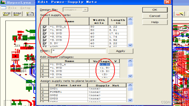 5 定义电源网络 Hyperlynx 在计算网络的过冲及串扰时不考虑周围电源网络的影响,默认电源网络上是静态的直流信号。所以为了避免不必要的计算量,仿真前应该对所有直流电源网络赋予直流电源特性,使 Hyperlynx 能识别出 PCB 网络中所有的电源网络,以避免不必要的计算。点击 SETUPÆPOWER SUPPLIES,如图 8 所示,弹出图 9 所示界面,先在 NET 里选择电源网络的,再为已选电源网络赋予直流电压和所属叠层。 图 8 编辑电源网络 图 9 给电源网络赋电源值 6 加载仿真模型 6.1 仿真器设定 Hyperlynx 支持的主要仿真模型类型有 IBIS 模型、 MOD 模型、 SPICE 模型,仿真时应根据器件所加载的模型类型选择合适的仿真器,否则会出错。一般若文件中模型均是 IBIS 模型、或者 MOD 等模型而无 SPICE 模型,则 Hyperlynx 会自动直接调用 Hyperlynx 仿真器;对于 SPICE 模型, Hyperlynx 可调用自带的 Eldo仿真器或者由操作者指定第三方 HSPICE 仿真器。具体设置方法如图 10、 图 11。 图 10 SETUP 选项 ![]() 图 11 仿真器设置 6.2 加载模型库 在加载模型之前,用户可将自己模型整理好放在指定的文件夹,并在软件的仿真库路径选项中添加该文件夹的路径。然后生成模型文件查询索引,以便在给器件赋模型时便于器件模型查询、搜索。点击 SETUPÆ OPTIONÆDirectories 子选项中,弹出仿真模型库文件夹路径编辑选项,如下图图 12、图 13 所示。 图 12 系统文件夹选项 ![]() 图 13 添加库文件路径 在添加完库文件路径后要重新生成新的库文件索引, 便于在给器件赋模型时进行搜索和查找,如图 14 点击对话框右下角生成模型索引按钮生成索引。 图 14 生成模型库文件索引 6.3 添加器件模型 仿真前加必须为器件添加行为模型,为器件赋予仿真模型的方法有多种。根据仿真的实际需要可选择合适的模型加载方法。Hyperlynx 中常用模型加载方法有以下三种: 交互式模型添加方法 在没有大部分器件的模型情况下,只针对特定网络进行信号完整性仿真时,可先选定该特定网络然后对与该网络相连的各器件管脚一一进行模型赋值。这种交互式模型赋值方法快捷、 灵活、 简单, 可以只给一个器件的某几个管脚赋模型,适合在没有整个器件模型的情况下使用;而且可以使用.MOD( model of databook)模型,很容易对器件某一管脚的驱动器模型的上升沿时间、下降沿时间、管脚寄生电容、电阻参数做修改。选中待仿真的信号,点击快捷工具栏中的 COMP 选项,弹出管脚模型赋予界面。如图 15 所示,可为管脚选择.MOD 模型。 图 15 部分管脚模型赋值 |