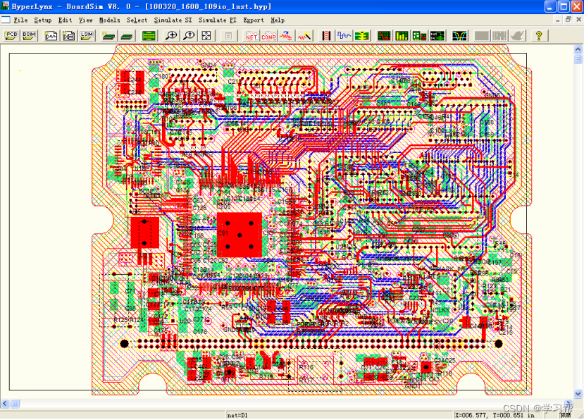 10 模型文件结构及 模型创建 Hyperlynx 中支持的信号完整性模型有*.SnP 模型(即 S 参数模型), SPICE模型、 MOD 模型、 IBIS 模型和 EBD 模型等。在此以 IBIS 和 MOD 这两种最常用的模型为例,简要说明其模型的结构和特点及创建过程。 10.1 .MOD 模型 MOD 模型是由 Mentor Graphics 公司定义的一种简单信号完整性模型, 是单一特定管脚的驱动器或者接收模型,只能用于赋予某一管脚,不能适用于整个器件。点击 MODELSÆEDIT DATABOOK IC MODELS 弹出如下界面。 图 41 MOD 驱动模型模型编辑 如图 41 所示,输出驱动器的 MOD 模型参数有四类: 输出特性( ouput driver) :包括驱动输出级所用工艺技术类型(如晶体管、 CMOSFET 等)、高低逻辑电平状态下的直流输出电阻、边沿时间、驱动内部的偏置电压; 钳位二极管特性:包括二极管的类型、直流电阻( V-I 曲线斜率); 器件供电电压和输出电容:包括 VCC 和 VSS 的直流电压值以及驱动总的输出电容值; 测试门限和负载:指以上各种数据在何种测试条件得到的,具体包括测试的参考电压、输入电压、直流负载、交流负载参数。 图 42 接收器 MOD 模型编辑 接收器的 MOD 模型参数如图 42 所示,也有四类参数: 输入特性( input) :包括输入电阻、接收器输入级的等效偏置电压; 钳位二极管特性:包括二极管的类型、直流电阻( V-I 曲线斜率); 输入电容:接收器总的输入电容值; 测试门限和负载:输入为逻辑高电平的最低门限值和输入为逻辑低电平的最高门限值。 以上各种 MOD 模型参数一般可以在器件的 DATASHEET 上 DC 特性和 AC特性信息中找到。 10.2 IBIS 模型 IBIS 模型是一种信号完整性模型,模型内有详细的数据来描述驱动器或者接收器的行为特性,如上升沿过程、管脚封装的影响、逻辑电压值等。 图 43 驱动器的 IBIS 等效模型 图 44 接收器的 IBIS 等效模型 IBIS 文件格式如下: Keyword [IBIS ver] [File name] [File Rev] [Date] [Source] [Notes] [Disclaimer] [Copyright] [Component] [Manufacturer] [Package] [Pin] signal_name model_name [Model] [Voltage Range] [Pullup] [Pulldown] [Ramp] [Rising Waveform] [Falling Waveform] [End] 图 45 打开 IBIS 文本编辑器如图 45 在 Edit 菜单栏下启动 IBIS 文本编辑器, 并打开任意一个 IBIS 文件,结果如图 46 所示。从文本编辑器的左边导航栏可以清楚的看到该文件中包含了几个器件以及每个器件的管脚模型映射等信息。由于 IBIS 文件中需要有大量的V-I 数据和 V-t 数据来描述器件的模型行为,而这些数据一般是由实测或者由SPICE 仿真得到。故对整个器件进行 IBIS 文件建模难度很大,一般只能由器件厂商提供。 图 46 IBIS 文件结构显示 11 仿真实例 下面以一块具体的 PCB 为例,来说明如何使用 Hyperlynx 进行板级的信号完整性分析。 11.1 导入 PCB、设置叠层 本 PCB 板是一块 Cadence 格式的 PCB 板,可以直接由 Hyperlynx 导入。导入后结果如图 47 所示, 图中各层信号线均以不同颜色表示。点击叠层设置按钮,进叠层的修改设置,如图 48,将实际的板层厚度、介电常数等信息填入表格中。 图 47 PCB 导入到 Hyperlynx 后显示结果 图 48 修改叠层 |