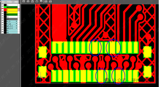 说到FPC设计,先告诉大家一个好消息,嘉立创现在可以免费FPC打样,文末可以扫码领券,大家记得薅羊毛!FPC钻孔,板框,线路,阻焊,文字设计与PCB是一样的,只是在元器件背面及接口位置需要做补强层。当然,也有一些FPC设计需要特别注意的地方: 1.外形及钻孔设计 (1)通孔距板框线最小0.5mm,小于0.5mm需改为U形孔(孔与板框拉通) (2)过孔离防焊开窗保证0.2mm以上,否则会导致孔边露铜 (3)FPC不建议设计盘中孔,FPC无法做树脂塞孔,做盘中孔有可能会漏锡 2.线路设计 (1)大铜面氧化:因设计的是大铜面,压覆膜时空气很难排掉,空气中的湿气与铜面在高温高压下产生氧化反应,导致外观不良,但不影响功能,为避免名这种问题,建议设计成网格铜皮,或在大铜面上增加阻焊开窗 (2) 尽量不要设计独立焊盘:下图所示,线路焊盘是独立的,且两面重叠,因FPC中间基材仅25um,焊盘容易脱落,建议增加覆铜 ,并在焊盘四角增加连接线,与覆铜相连,且上下两面焊盘需要错开,增加结合力。 (3)焊盘脱落:连接器座子焊盘比较独立,容易脱落,建议做压PAD设计。 (4)尽量不要设计大面积露铜区域,否则会有皱褶 (5)软板采用的是覆盖膜作为阻焊层,覆盖膜需要先开窗,再贴合,焊盘到线需要有0.2mm的间距,且阻焊桥要有0.5mm以上,即两焊盘间距要有0.5mm以上才能保桥,否则只能建议客户开通窗,接受露线制作。 (6)下图所示,排线线路稀疏,拐角处容易撕裂,建议在板边增加防撕裂铜条或在背面增加网络铜。 (7)线路网格尽量铺45度角的,对信号传输会好一些,线宽线距建议0.2/0.2mm 3.板边金手指设计 (1)插拔手指:激光切割时板边遇高温碳化导致金手指之间出现微短问题需要把金手指内缩0.2mm(嘉立创会统一内缩,有特殊要求需提出来) (2)焊接手指板内焊盘上的过孔不能加成一排,防止应力集中在过孔上,容易导致断裂 (3)焊接金手指上下覆盖膜要错开0.3mm以上,防止折断 (4)焊接手指建议设计成阻焊膜压PAD的效果(即将焊盘延长,使覆盖膜压住焊盘0.3mm以上) (5)金手指阻焊开窗:开窗建议压焊盘0.3mm以上,防止金手指PAD与连接处断开 (6)我司暂不支持 缕空板,反向手指需增加焊盘及过孔来实现换层 (7)因FPC是使用的阻焊膜不能像绿油一样做阻焊桥,在设计IC类焊盘时,焊盘上不能有多余的覆铜(如下图圈住的焊盘设计不合理),否则会导致焊盘变大,间距变小,焊接时容易短路。 (8)金手指焊盘需设计为独立的焊盘,如果手指焊盘有覆铜和导线 ,阻焊开通窗后会露铜或露线 (9)金手指外形公差默认为+/-0.1mm,如果要求+/-0.05mm,需要在下单时选择 4.阻焊设计 (1)FPC连接器座子比较容易脱落,建议做成压PAD设计 (2)IC中间需要有桥连才能保留中间的阻焊 (3)金手指焊盘一定要有阻焊开窗,否则无法与连接器导通 (4)默认使用soldermask做为阻焊层,一定要保证阻焊层正确 (5)为防止过孔弯折时孔铜断裂,FPC过孔一般是默认做盖油的,如果要做开窗,需要在下单时备注清楚。 (6)测试点设计的是过孔属性,导致没转出来,测试点不能设为过孔属性或单独给测试点增加一个开窗。 (7)双面板板边有大的露铜金面,会有板边发黑的问题,建议在板边增加一圈覆盖膜 5.丝印设计 (1)补强上有字符丝印的需要在下单时选择补强上有丝印,防止产线做错流程 (2)说明文字不要设计在板内,要不然有可能就是下一个悲剧了 6.拼版设计 (1)整板都是钢片,比较重,FPC容易拉扯变形,无法贴片。建议钢片补强的板与板间距最少3mm,开槽宽度0.5mm,连接点宽度1mm,需每隔15mm左右加一个,下单备注:包装需每片隔纸,并上下夹纸板出货。 (2)拼版连接位:连接位加在金手指上,会导致金手指前端不平整。 (3)连接点太少,板子容易掉来下,每PCS最少要2个以上的连接点,连接点宽度0.8mm,具体依板尺寸来定,板越大,连接点越多。 (4)板子太小,连接点太多,会导致撕板很困难,如果不做SMT,每PCS只需做2个0.3mm的连接点,方便手撕分板 (5)拼版利用率太低会导致报价过高(如下所示,利用率太低),.拼版宽度尽量119mm或240/250mm,建议选第三方拼版 (6)板子尺寸太小时,激光吸尘时会把板子吸走,建议小于20*20mm尺寸的板做拼版交货,或拼版生产叫嘉立创帮分板。 7.补强设计 补强是指在FPC局部区域增加钢性材料,方便组装。PI补强适用于金手指插拨产品; FR4适用于比较低端产品;钢片平整度好,不会变形,适用于需要芯片贴片的产品。详见:补强说明图 (1)插件孔不建议用钢片做补强,有可能会导致短路;另外钢片是有弱磁性的,霍尔元件不能使用;最后插拔金手指不建议用钢片 (2)下单时有插拔金手指的一定要备注总厚度要求,总厚度一般在连接器规格书中有,选PI补强厚度时不能直接用总厚度减去FPC板厚来计算。可以通过嘉立创金手指PI厚度计算器来计算。 (3)补强开口设计:是指补强要避开下方的元器件孔或焊盘,最好是客户自己设计好,我司一般默认按避开焊盘0.3mm来处理,如果掏开补强后,剩下的补强宽度不够2mm的,我们会直接拉通(即这一整块区域都没有补强),注意此点我们不会提出问客单,有特殊要求要提出来。 (4)金手指补强高度建议比金手指焊盘长1.0mm以上,防止使用过程中金手指断裂 (5)电磁膜两面是有可能会导通的,如果下面电磁膜不是一个网络,建议取消电磁膜设计 (6) 对电磁膜接地电阻有要求的,需要您自己设计接地阻焊开窗,无要求时我司默认是随机增加1.0mm以上的阻焊窗。注意:电磁膜不接地有可能会吸收大量电磁波,导致信号有问