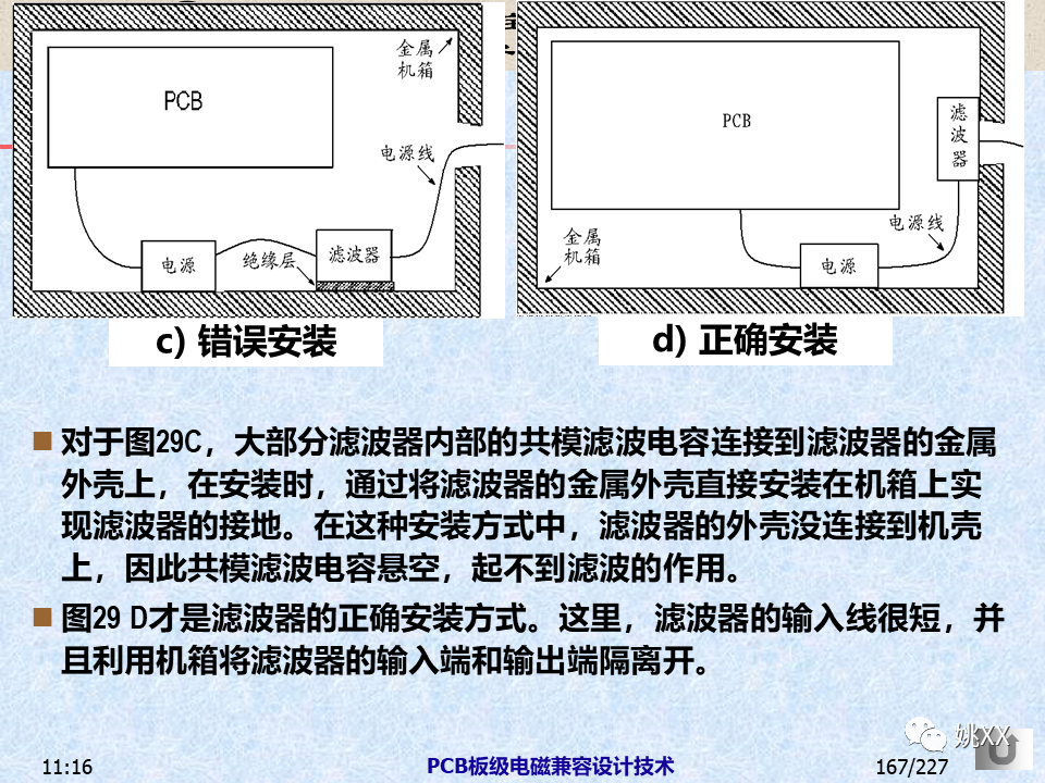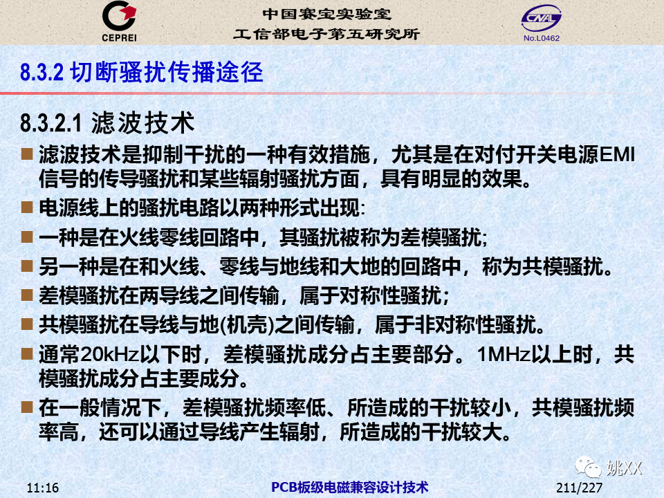 这是EMC行业专家朱文立老师的一个课件。经编者对比,本课件对应的是朱老师的专著《电磁兼容设计与整改对策及案例分析》。一本特别好的EMC参考书籍。原课件页数较多,本次对应的是:《电磁兼容设计与整改对策及案例分析》的第6~11章: 第6章 接地和搭接设计 第7章 屏蔽技术应用 第8章 滤波技术应用 第11章 产品电磁兼容设计举例 |