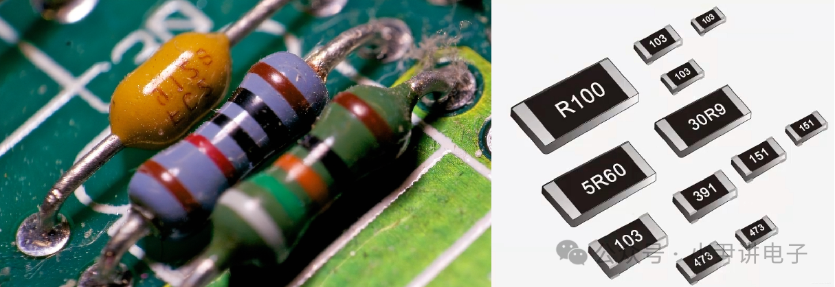 ----------------------目录----------------------1 简介 2 认识电阻 3 电阻基本参数 4 电阻功能 5 降额设计 6 十大电阻供应商 ------------------------------------------------ 1 简介 作为电子电路设计中最基本的元器件之一,电阻在PCB上随处可见。作为一个工作十年的电子工程师,今天来讲些讲解一下电阻在电路设计过程中的各种应用场景。 2 认识电阻 电阻分类繁多,今天我们主要从实际应用的领域将电阻分别以下两类:插件电阻、贴片电阻。 2.1 插件电阻 插件电阻也称为色环电阻,这种电阻最大的特点是额定功率较大(贴片电阻允许的最大功率≤1W),所以贴片电阻无法完全取代插件电阻。 电阻结构 插件电阻内部基本结构见下图: 名称及功能见下:
