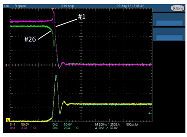 大功率系统需要并联 IGBT来处理高达数十千瓦甚至数百千瓦的负载,并联器件可以是分立封装器件,也可以是组装在模块中的裸芯片。这样做可以获得更高的额定电流、改善散热,有时也是为了系统冗余。部件之间的工艺变化以及布局变化,会影响并联器件的静态和动态电流分配。本白皮书将探讨IGBT并联的技术要点,第一篇“IGBT的并联知识点梳理:静态变化、动态变化、热系数”,我们介绍了静态变化、动态变化、热系数。本文将继续介绍栅极电阻、经验数据。 栅极电阻 关于栅极驱动和返回路径的阻抗匹配问题,已有很多论述。众所周知,阻抗匹配越好,IGBT 的功率和电流均衡就越好。 关于这个问题的大多数讨论,都建议必须使用单独的栅极驱动电阻。为每个 IGBT 提供一个栅极电阻可降低并联器件之间发生振荡的可能性,但同时也会增加器件的开通和关断时间及特性曲线的差异性。 如果使用一个共用栅极电阻,在不引起振荡的情况下,电流波形将更加匹配,因为两个栅极同时处于相同的电位。 图 1 和图 2 显示了两个并联运行的 IGBT,分别使用了单独和共用的栅极电阻。 图 1. 独立栅极电阻的关断波形 图 2. 共用栅极电阻的关断波形 我们特意挑选了特性不同的 IGBT 进行测试,以便在使用不匹配的器件时可以看出它们之间的差异。有关所使用的 IGBT 测试的更多信息,请参见下面的 "经验数据 "部分。 上面标有 IGBT 编号的波形是集电极电流,下面的曲线是集电极电压。 在此测试中,使用两个 22 Ω 电阻进行驱动,并带有单独的栅极电阻;使用一个 11 Ω 电阻进行驱动,并带有共用栅极电阻。IGBT为 40 A、600 V、NGTB40N60IHL 器件。 从示波器截图中可以看出,尽管共用栅极电阻不会对电流均衡产生影响,但它确实大大改善了开关波形的匹配。 如果器件之间出现振荡,则有必要为每个 IGBT 使用单独的电阻;即使在这种情况下,也可以使用一个共用电阻与单独的电阻串联。 图 3. 共用栅极电阻和单独栅极电阻结合使用 图 3 所示电路采用了共用和单独栅极电阻的组合。一旦构建完成,可以很容易地在两个极端之间调整电阻值,以尽可能地匹配开关特性,同时消除两个 IGBT 之间的振荡。 经验数据 对一组 NGTB40N60IHL IGBT 进行序列化,并测试了导通损耗和开关损耗。然后根据导通损耗和总开关损耗绘制了这些数据。选择两组器件。1 号和 26 号单元用于测试不同的器件,2 号和 27 号单元用于测试相似的器件。 图 4. NGTB40N60IHL IGBT 样品的散点图 以下三个示波器轨迹显示了两个最佳匹配器件(2 号、26 号)的集电极-发射极电压和集电极电流 图 5. 匹配器件的开通波形 尽管两个器件非常匹配,但开启时的电流还是存在差异。不过,这种不平衡不会持续很长时间,由于VCE(sat)参数的匹配,稳态电流基本相等。 图 6. 匹配器件的关断波形 图 7. 匹配器件的脉冲波形 从上述波形可以看出,尽管两个器件的导通曲线并不相同,但电流趋于一致,关断波形也完全相同。使用单个栅极驱动电阻重现图 7,波形没有变化。 还应注意的是,我们是根据总开关损耗对IGBT进行匹配的,因此单个开通和关断损耗可能并不完全匹配。 图 8. 不匹配器件的开通波形 图 9. 不匹配器件的关断波形 图 10. 不匹配器件的脉冲波形 对于不匹配的 IGBT,开通和关断的路径相似,但导通电流在整个脉冲持续时间内存在显著差异。 虽然最好能有完美适配的器件,但也可以容忍一定程度的参数差异。热管理系统的设计必须考虑到这些差异。VCE(sat)参数对两个(或多个)器件之间的功率损耗差异影响最大。 上述所有波形均使用 11 Ω 的公共栅极电阻。 测试电路板 图 11. 用于并联测试的测试板和散热器 此设置用于测试IGBT并生成本应用说明中的波形。尽量匹配两个IGBT之间的阻抗。虽然有两个驱动器,但实际测试中只使用了一个,因此驱动器不会造成时序差异。 图 12. 测试电路图 并联器件检查清单 · 尽可能匹配电气阻抗。 · 尽可能匹配热阻抗。 · 保持较高的栅极驱动电压。 · 使用公共栅极电阻器,除非发生振荡。 · 结语 本应用说明讨论了与并联 IGBT 相关的几个问题。选择较高的栅极驱动电压和正确的栅极电阻配置,对于电流均衡与匹配的热布局和电气布局同样重要,参考本文探讨的信息将有助于确保设计的可靠性。 |