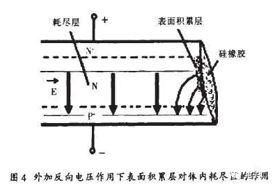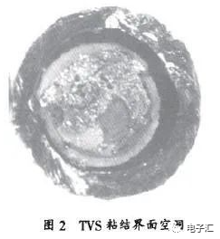 摘要:常用电路保护器件的主要失效模式为短路,瞬变电压抑制器(TvS)亦不例外。TvS 一旦发生短路失效,释放出的高能量常常会将保护的电子设备损坏.这是 TvS 生产厂家和使用方都想极力减少或避免的情况。通过对 TVS 筛选和使用短路失效样品进行解剖观察获得其失效部位的微观形貌特征.结合器件结构、材料、制造工艺、工作原理、筛选或使用时所受的应力等。采用理论分析和试验证明等方法分析导致7rvS 器件短路失效的原因。分析结果表明引发 TvS 短路失效的内在质量因素包括粘结界面空洞、台面缺陷、表面强耗尽层或强积累层、芯片裂纹和杂质扩散不均匀等。使用因素包括过电应力、高温和长时间使用耗损等。 1、引言 瞬变电压抑制器( TVS:Transient Voltage Suppressor)是为了解决电子设备电压瞬变和浪涌防护问题而设计出的一种高性能的电子电路保护器件,瞬变电压抑制二极管,主要用于对电路进行瞬态保护。当TVS 管两端经受瞬间的高能量冲击时,它能以极高的速度把两端间的阻抗变为低阻抗,吸收一个大电流,从而把它两端间的电压钳制在一个预订的数值上,保护后面的电路原件不因瞬态高电压冲击而损坏。国内外在电子产品和国内高可靠设备中的应用都十分普遍。随着TVS 使用范围和使用数量的增加,TVS 自身的可靠性备受关注,因为 TVS 可靠性不仅是 TVS 本身的问题,还关系到被保护电子电路的使用可靠性。研究 TVS 的可靠性须对 TVS 的失效模式和失效机理有深入的了解。文献表明 TVS 的失效模式有短路、开路和电特性退化。其中,短路失效最为常见,且对电路的影响最为严重。目前,国内对国产TVS 短路失效机理的研究缺乏深度,不够系统,因此,对国产 TVS 短路失效机理进行深入、系统的研究十分必要。 2、TVS 短路失效样品和失效分析程序在国内主要TVS 生产厂商的支持下,搜集了有关国产 TVS 筛选和使用中短路失效的样品和筛选应力条件或使用条件等失效数据,对这些样品进行电参数测试、开帽、去保护胶、管芯与电极分离、去焊料和显微观察等步骤,找出失效部位,分析引发TVS 短路失效的内在质量因素或使用因素,以及失效的发生过程。其中内在质量因素即与器件设计、材料、工艺、组装、封装相关的引起器件失效的因素;使用因素即除内在质量因素以外的引起器件失效的因素,通常与过电引力、静电放电、过载、错误使用等相关。 3、引发 TVS 短路失效的内在质量因素和失效机理 TVS 器件主要由芯片、电极系统和管壳3 部分构成。其中芯片是核心,通常在单晶硅片上采用扩散工艺形成。将扩散好的芯片经过腐蚀成台面状、芯片镀镍、烧焊、涂保护胶、封帽、点焊上引线、外引线镀锡等工序便完成TVS 器件的制造。如果 TVS 制造工艺过程中控制不良,则可能造成 TVS 器件的固有缺陷,使TVS 成品率和可靠性降低,在筛选或使用中容易失效。TVS 筛选短路失效样品分析和统计表明,TVS 引发筛选短路的内在质量因素有很多,各因素的比例如图 1 所示。这些因素也是使用中引发 TVS 短路失效的主要内在质量因素。 图 1-引发 TVS 筛选短路失效的内在质量因素分布 3.1 芯片粘结界面空洞 引发 TVS 短路的最典型的原因是管芯与内引线组件、底座铜片烧结不良,在烧结界面出现大面积空洞,如图2 所示。 空洞可能是由于焊料不均匀或粘结界面各层材料玷污、氧化使焊料沾润不良,造成烧焊时焊料与芯片或金属电极没有良好的熔合焊接引起的。空洞面积较大时,电流在烧结点附近汇聚,管芯散热困难,造成热电应力集中,产生局部热点,严重时引起热奔,使器件烧毁。对这些烧毁的器件进行解剖分析,可以看到有芯片局部较深的熔融;空洞面积较小时,可加速焊料热疲劳,使焊料层会产生疲劳龟裂,引起器件热阻增大,最终 导致器件过热烧毁。 3.2 台面缺陷 TVS 台面缺陷造成的失效常常是批次性的。TVS 制造工艺过程中造成芯片台面损 伤的原因主要有两个:a0 u/ E: A 1)芯片在酸蚀成型时,由于氢氟酸、硝酸混合液配方过浓或温度过高而反应剧烈 烧焊过后进行碱腐蚀清洗时,腐蚀液浓度过大、温度过高而造成碱腐蚀清洗过重。在显微镜下观察碱腐蚀清洗过重的台面,可以看到台面有类似被冲刷的痕迹,如图3 所示,这是因为硅片在(1,0, 0)晶向被碱腐蚀清洗试剂腐蚀的速率最快。) 3-碱腐蚀清洗过重的台面 台面缺陷或损伤的 TVS 器件经过温度循环和箝位冲击等筛选试验后,进行电参数测试时通常表现为短路或击穿特性异常,从而被剔除。但轻微台面损伤的TVS 器件在筛选后电参数测试时不易被发现,可能被列为良品出厂。这些 TVS 器件在使用过程中经受长时间热、电、机械等应力的作用后,台面缺陷加剧,在缺陷处形成载流子产生复合中心,使表面反向漏电流大大增加。大的表面反向漏电流使pn 结边缘温度升高,产生热电综合效应,最终导致 pn 结边缘半导体材料温度过高烧毁。 3.3 表面强积累层或强反型层 即便TVS 器件芯片台面完好,TVS 短路失效也容易发生在表面。这是由于晶体结构的周期性在表面上中断,加上半导体表面往往存在许多磨片、抛光、喷砂、切片等引起的晶格缺陷,吸附腐蚀时残留的化学品、气体或其它污染物,会使半导体表面带电。表面电荷被保护胶钝化,并吸附或排斥半导体体内的自由载流子,在pn 结边缘形成表面积累层、耗尽层或反型层等表面空间电荷层。在外加