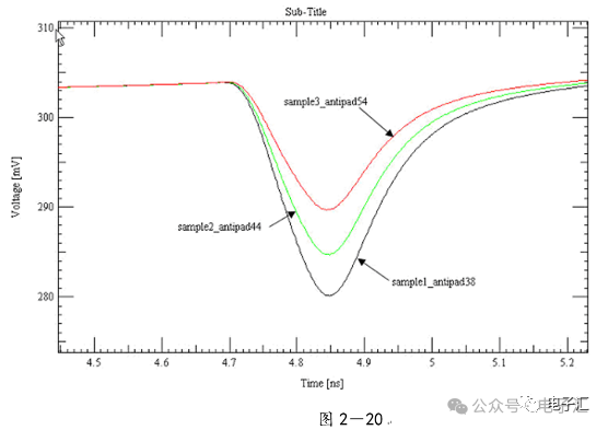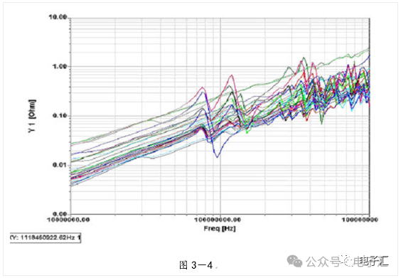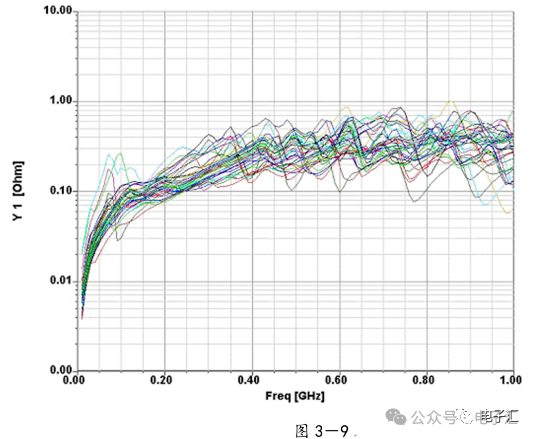 本文以高速系统的信号/电源完整性分析和EMC分析的为基本出发点,着重介绍了高速PCB的信号和电源完整性分析的基本要领和设计准则,通过EDA分析工具实现PCB的建模与参数提取;通过电磁场分析工具完成网络参数定量分析,从最基本的设计方法入手,提出了高速PCB的信号/电源系统设计参数优化方案,指出了信号/电源完整性仿真设计和EMC设计的内在联系,最后介绍了利用EDA仿真工具和EMC测试验证相结合解决单板PCB设计的EMI问题的成功范例,希望本文总结的经验能给予正在从事高速系统仿真的设计开发人员和EDA设计人员解决此类问题的基本思路与方法。关键词 非理想化电容建模、信号/电源完整性分析、EMC分析、应用举例、问题总结 引言 当今的高速PCB设计领域,由于芯片的高集成度使PCB的布局布线密度变大,同时信号的工作频率不断提高,信号边沿(Tr)的不断变陡,由此而引发的信号完整性和电源完整性问题给EDA设计人员和硬件开发人员带来前所未有的挑战,信号/电源完整性问题处理不当同时会带来一系列的EMC问题,给产品的可靠性造成危害。目前,基于Cadence公司SQ的板级与系统级互连仿真已经在广泛应用,在硬件设计流程中引入了SI/PI/EMI的仿真分析环节。信号完整性与电源完整性分析做的较成功的PCB,电磁兼容性(EMC)也明显改善。 信号/电源完整性分析通过对PCB的信号互连与电源分配系统(PDS)分析,使用EDA与电磁场分析软件找出PCB的噪声点并加以抑制,通过PCB的优化设计改善层间噪声与电源层和地线层之间的阻抗。降低信号的反射和串扰;改进信号的回流路径,降低电源分配系统阻抗,同步开关噪声,消除PCB上关键点和关键频率的谐振,合理放置去耦电容改善电源地的阻抗与谐振,使用屏蔽过孔等措施减小PCB的边缘辐射。 随着信号的Tr变快,产品的EMC问题成为EDA设计的最大难点。EMC问题由来已久,涉及面较广,随着信号速率的提高和芯片尺寸的减少,传统的EMI设计方法显得力不从心。解决EMC问题和解决其它SI问题显著的不同点在于EMC更依赖于测试,或者是仿真与测试过程两者的融合,不同类型的EMI包括来自于信号互连的连接器,电缆,PCB的连线以及边缘辐射等。 电源和信号完整性对EMI的性能有着直接的影响,从PCB设计阶段控制EMI,能起到事半功倍的作用。我们通常采用下列几种方法来分析并改进信号和电源完整性,从而减小EMI辐射。 1. 减少电源地平面间噪声-电源完整性分析 2. 优化电源地系统阻抗-电源完整性分析 3. 降低串扰和反射-信号完整性分析 4. 改善同步开关噪声-信号完整性分析 5. 减少边缘辐射-信号完整性/电源完整性分析 一、 关于电源完整性仿真的电容建模 1、非理想旁路电容的定义: 在电源系统的设计中,我们经常用到以下的三类电容: 1)旁路电容:主要作用是给交流信号提供低阻抗的回流路径; 2)去耦电容:增加电源和地的交流耦合,减少交流信号对电源的影响; 3)滤波电容:用于电源滤波电路中,消除电源纹波; 在电源完整性仿真中,我们主要研究对象是非理想化的旁路电容。对于理想的电容来说,不考虑寄生电感和等效串联电阻的影响,那么我们在电容设计上就没有任何顾虑,电容的值越大越好。但实际情况却与理论分析相差很远,并不是电容越大对高速电路越有利,反而在高频段往往采用小电容,电容的材料和制造工艺也有要求。要理解这个问题,我们首先必须了解实际电容器本身的特性,在频率很高时,电容不再被当作理想的电容看待。电容的寄生参数的影响不能忽略。考虑到电容具有一定的物理尺寸,以及起连接作用的安装焊盘和过孔,其寄生参数包括一个串联电感和串联电阻,由此得到如图1-1的电容模型。 图1-1 对电容的高频特性影响最大的则是ESR和ESL,我们通常采用图1-1中简化的电容模型。电容也可以看成是一个串联的谐振电路,当它在低频的情况(谐振频率以下),表现为电容性的器件,而当频率增加(超过谐振频率)的时候,它渐渐的表现为电感性的器件。也就是说它的阻抗随着频率的增加先增大后减小,等效阻抗的最小值发生在串联谐振频率处,这时候,电容的容抗和感抗正好抵消,表现为阻抗大小恰好等于寄生串联电阻ESR,变化曲线如图1-2所示: 图1-2 从谐振频率的公式可以看出,电容大小和ESL值的变化都会影响电容器的谐振频率。由于电容在谐振点附近的阻抗最低,所以设计时尽量选用FR和实际工作频率相近的电容。如果工作的频率变化范围很大,则可以混合使用不同容值和FR电容,即同时选择一些FR较小的大电容和FR较大的小电容。 2、PI仿真电容及分布参数的建模: 非理想旁路电容由ESR、C、ESL、引线和过孔等几部分组成,见图1-3所示。 图1-3 在高速PCB设计中,我们常用的电容引线方式有以下几种,为定量分析各种引线方式的影响和建模的需要,我们从正在设计中的单板中提取了用于分析的样板,见图1-4所示。 图1-4 图1-5 常见的电容的引线方式有以下5种,如图1-6所示,其中第5种在焊盘上开孔目前工艺不推荐,在此只作分析,首先,我们分别计算了VCC_3.3V到电容管脚的引线和过孔的电感, 图1-6 得到以下5组数据(单位:亨利): L001 2.82101E-010 L002 2.70197E-010 L003 8.36196E-010 L004 9.23669E-010 L005 3.65286E-010 为了尽量减小引线电感,在设计中我们可以优先采用第2种引线方式,其中第4种引线方式在传统的PCB设计中广泛采用,由于这种引线方式会带来较大的引线电感,建议在高
