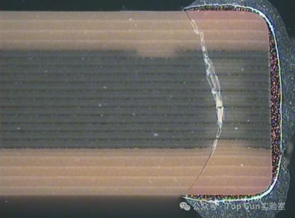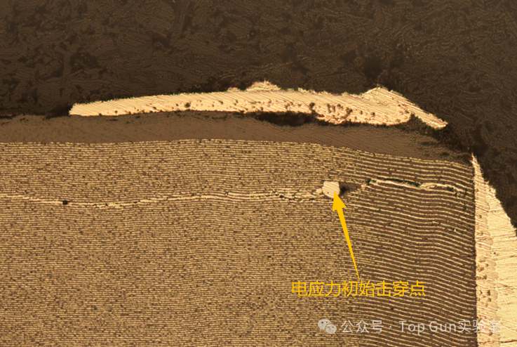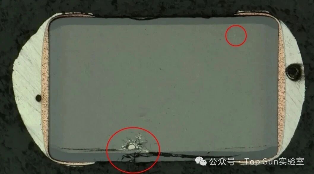 多层陶瓷电容器(MLCC)凭借其高容积比、低等效串联电阻(ESR)以及卓越的高频特性,已成为现代电子电路中应用最广泛的被动元件之一。然而,MLCC本质上是一种陶瓷脆性元件,其多层交替堆叠的结构(陶瓷介质层与内电极层)在面对复杂的机械、热、电应力及恶劣环境时,表现出较高的失效敏感性。深入解析MLCC的典型失效形貌,不仅有助于快速定位故障根源,更能为产品设计优化、制造工艺改进及可靠性提升提供科学依据。下文基于行业典型案例与材料科学机理,对MLCC的各类失效模式进行系统化梳理与深度解析。 1、电应力导致的失效熔融通道延伸:以耐压最薄弱的点击穿点为中心,熔融痕迹向两侧内电极呈放射状或线性延伸。 ![]() 介质二次损伤:击穿短路发热导致发生二次损伤,形成介质分层形貌。 ![]() ![]() 2、机械应力失效 机械应力失效是MLCC在组装与服役过程中最频发的模式。由于陶瓷基体抗弯曲能力较差,当外部载荷超过其断裂韧性时,会诱发破坏性裂纹。 弯曲应力失效形貌:MLCC在PCB上焊接后,其陶瓷本体与PCB之间形成一个刚性连接。当PCB发生弯曲、扭曲或受到冲击时,MLCC会产生裂纹,裂纹通常起源于MLCC的端电极附近,并以大约45°角向芯片内部延伸。 ![]() 撞击损伤形貌:不同于单纯的弯曲裂纹,此类失效在外观上通常可见明显的机械撞击痕迹。失效短路点多靠近护片区域,且在微观上表现为多层内电极的熔融与挤压变形。 ![]() ![]() 3、制造缺陷相关形貌制造过程中的工艺偏差常引入内部隐患。其中,电极结瘤是极具代表性的缺陷形貌,表现为内电极局部异常增厚或形成瘤状突起。此类结构会导致局部电场强度剧增(尖端放电效应),成为电击穿的诱发点。 ![]() 4、热应力失效热应力失效源于MLCC内部各材料(陶瓷、金属内电极、焊料)之间热膨胀系数(CTE)的不匹配,在温度剧烈波动时产生瞬态热机械应力。典型的形貌:月牙形裂纹,在受热不均或热冲击(如手工补焊)时,MLCC表面或内部常形成弧形或月牙状的应力裂纹。 ![]() 5、材料缺陷失效机理:氧空位(镍电极陶瓷电容器) 镍电极在高温环境下极易氧化,镍电极陶瓷电容器在烧结过程中必须使用还原性气氛,此时瓷粉主体的钛酸钡容易失去氧,形成氧空位,导致介质材料半导体化。 电容器在还原气氛烧结,产生氧空位Vo及电子(e),致使导电性增加,绝缘电阻降低。 由上图可知,在高温加电压作用下,氧空位会开始活跃,并穿越晶界往负极移动使得内电极/陶瓷介面阻抗下降,导致绝缘破坏。所以降低电容器中氧空位的浓度对提高其绝缘电阻至关重要。在烧结过程中,通过高温补氧的方式对氧空位进行氧回填是目前避免氧空位形成的最切实有效的办法。当然,补氧不是越多越好,补氧过多会造成MLCC内电极氧化。 |